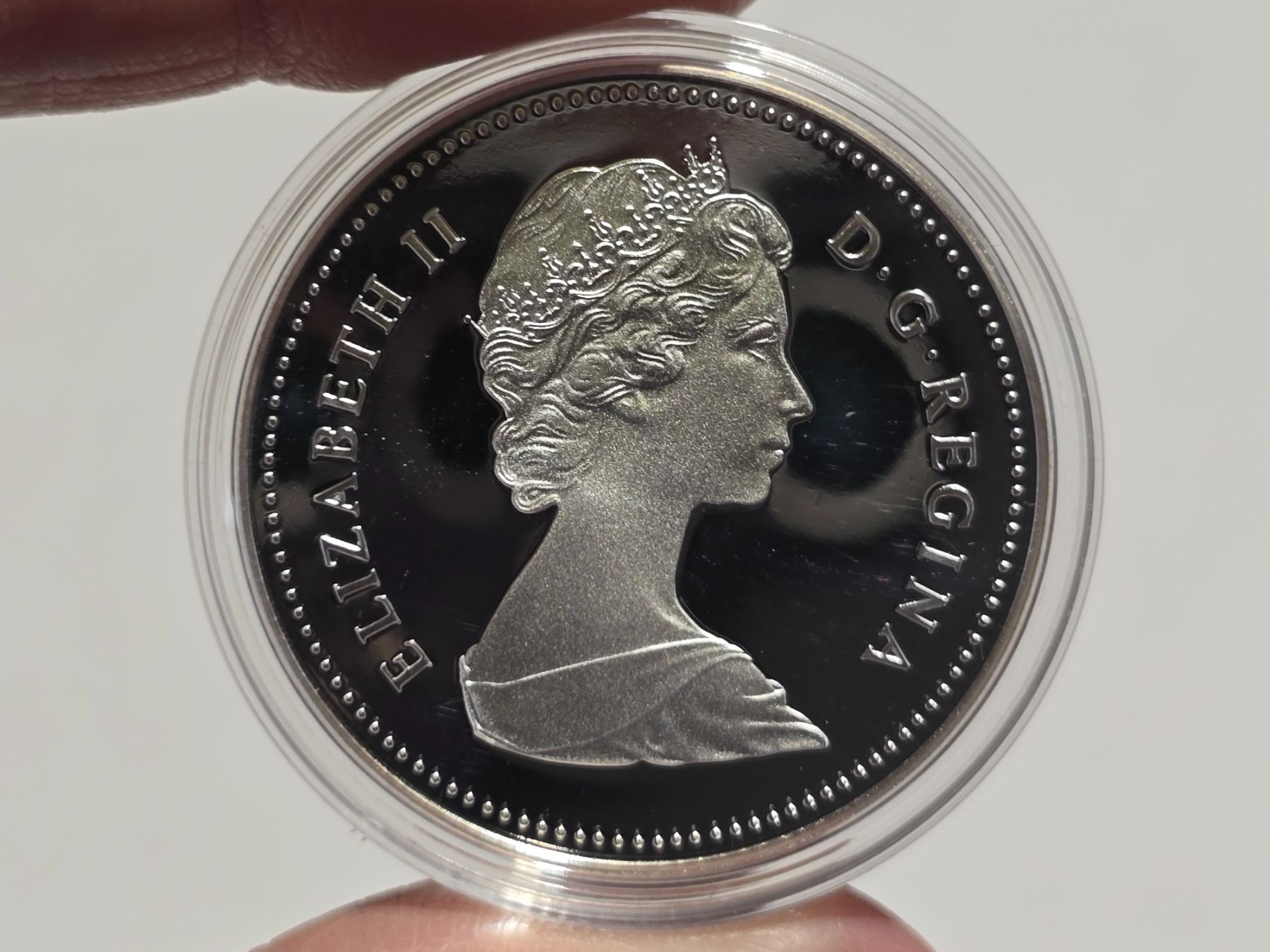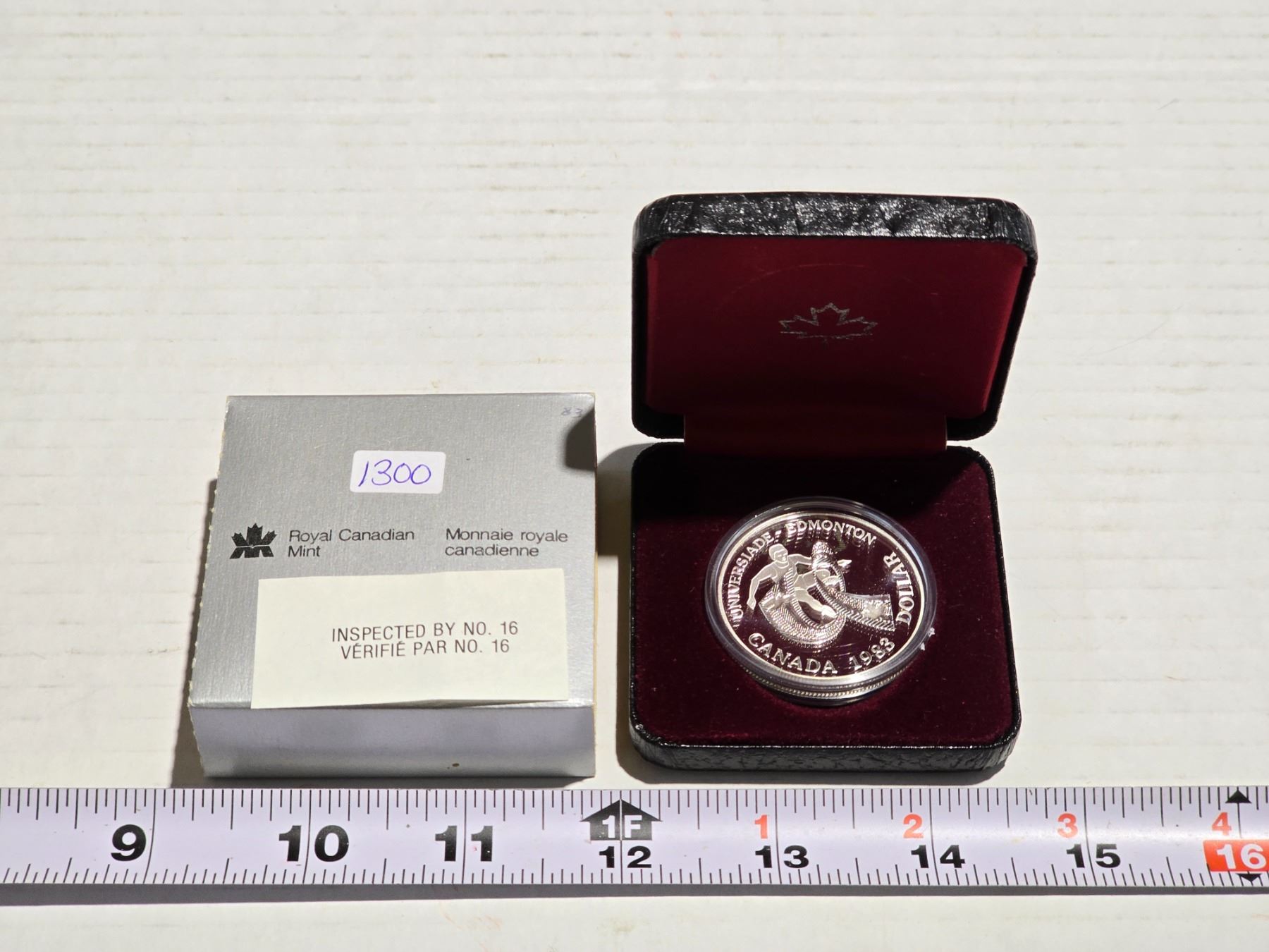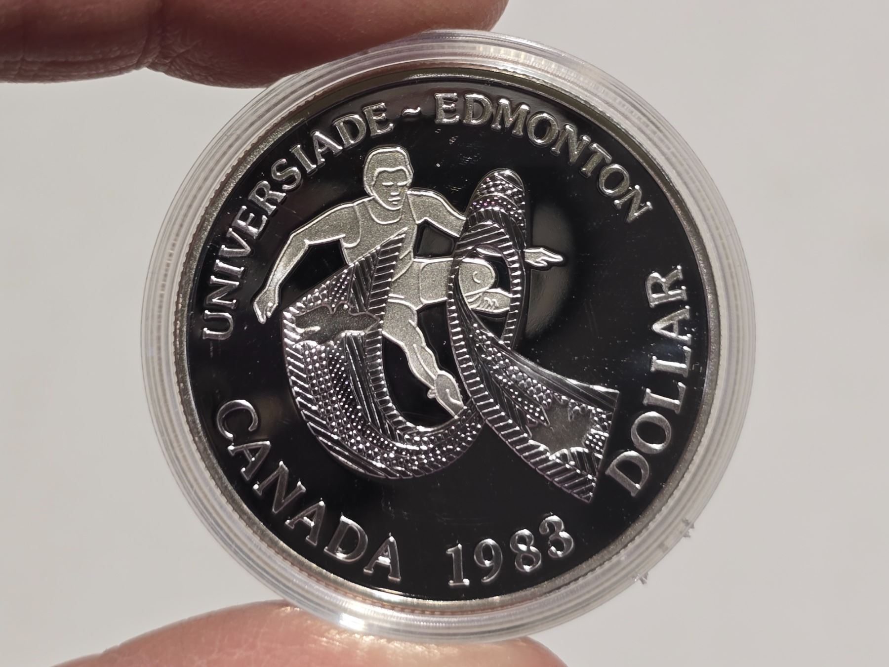 1983 Canadian "Universaide - Edmonton" silver dollar, in RCM square case