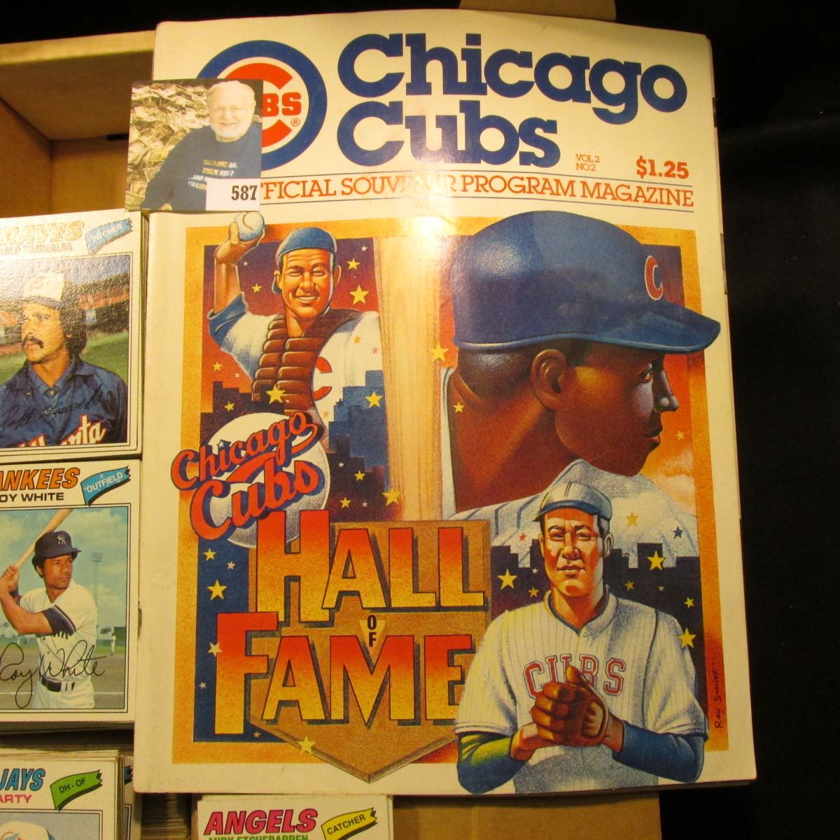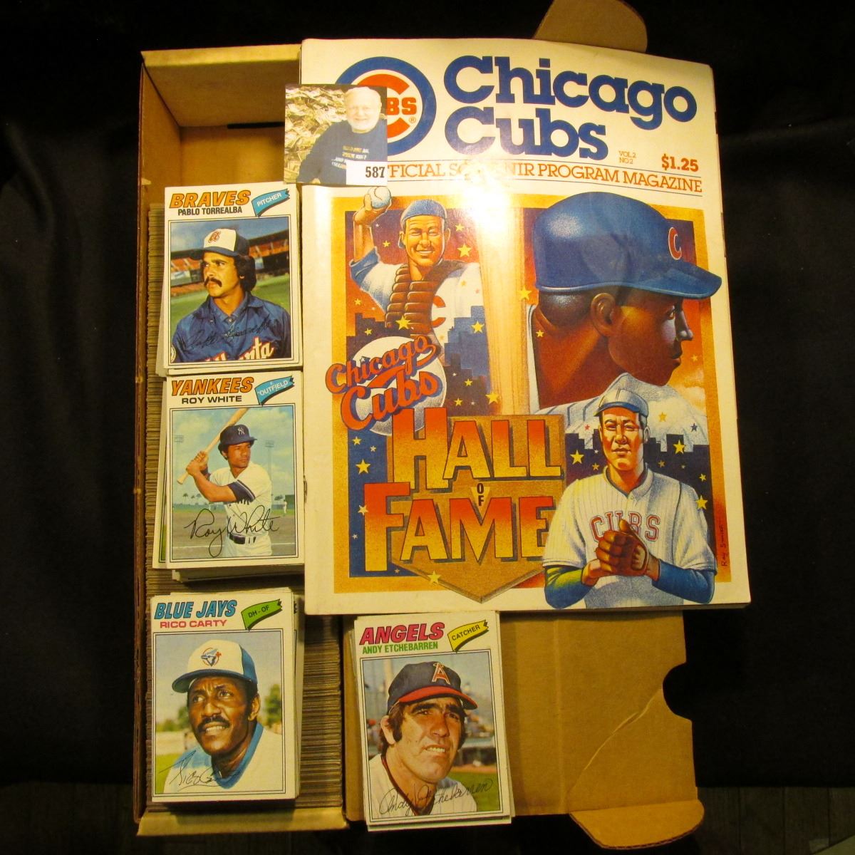 1983 Chicago Cubs Official Souvenir Program Magazine; & 14" Card Stock Box full of 1977 Topps Baseball Cards