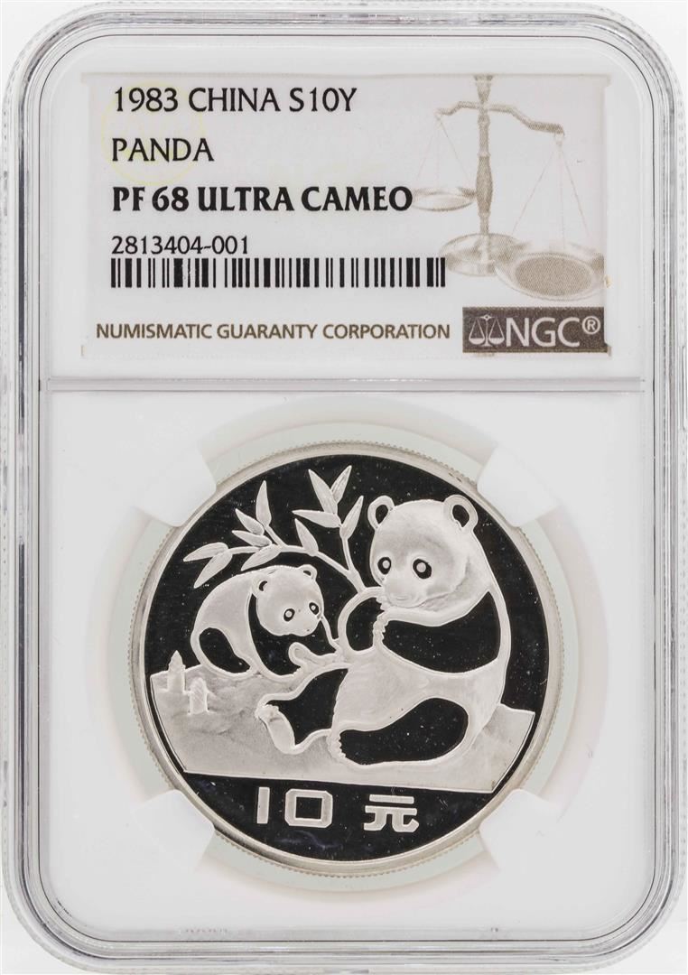 One 1983 China 10 Yuan Panda Silver Coin NGC PF68 Ultra Cameo. NGC Certified.