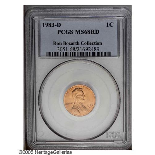1983-D 1C MS68 Red PCGS.From The Ron Bozarth Registry 1983-D[1C] MS68 Red PCGS.