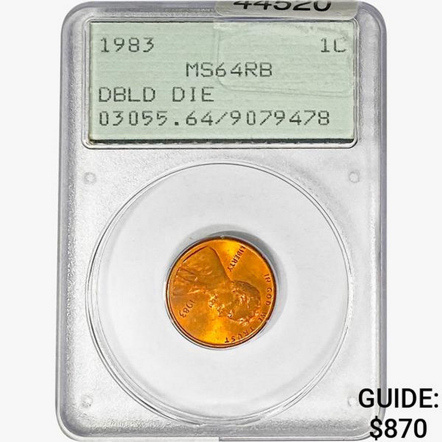 1983 Dbl Die Rev Lincoln Cent PCGS MS64 RB