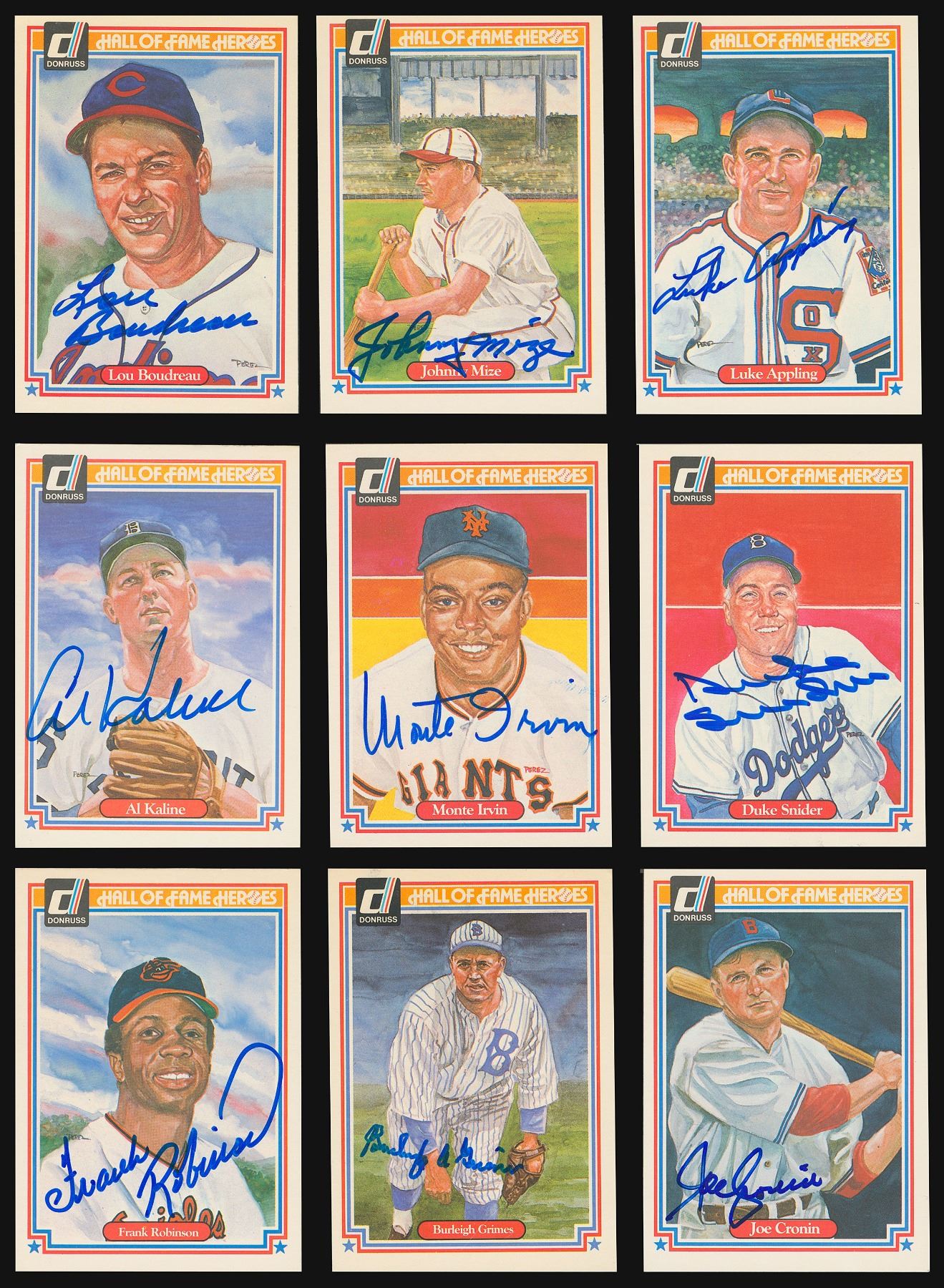 A complete set of 44 cards from the 1983 Donruss Hall of Fame Heroes set, with all possible cards signed by the subjects. Other cards, such as Cobb, Wagner, Young, and others, are included but not signed since all other subjects were deceased or, in Roy Campanella's situation, incapacitated.