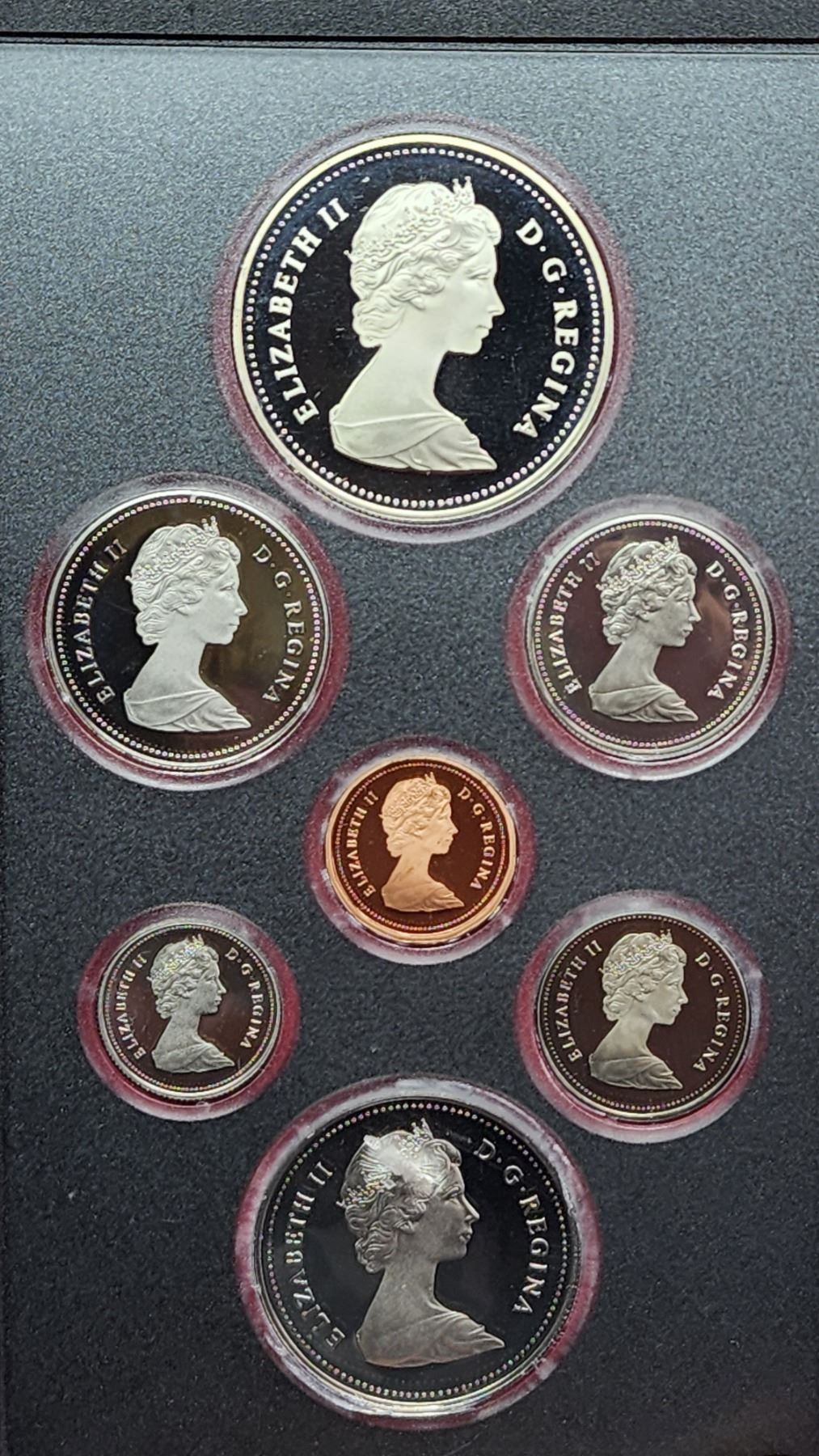 1983 Double Dollar Proof Set. 7-coin set includes Silver Dollar that commemorates the World University Games. Proof with Ultra Heavy Cameo. Housed in its original case of issue.
