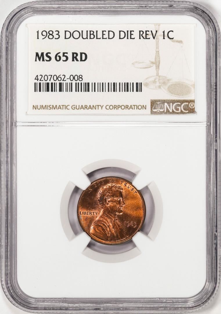 One 1983 Doubled Die Reverse Lincoln Memorial Cent Coin NGC MS65RD. NGC Certified.