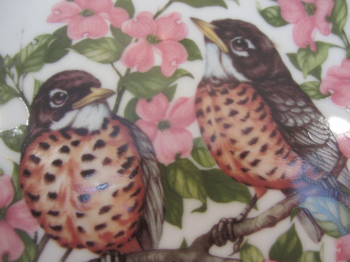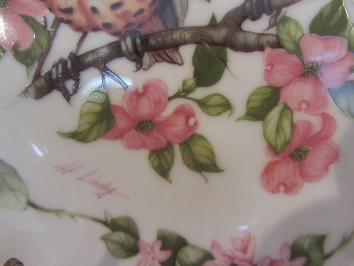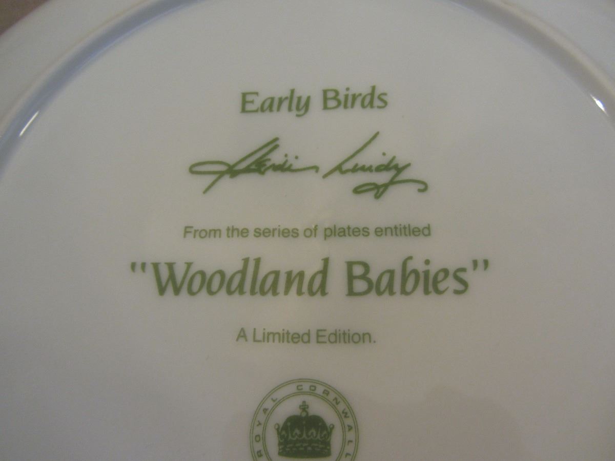 9 1/4" plate, dated 1983 'Early Birds' is one of the plates in the series of plates entitled 'Woodland Babies'. These plates are hand-bordered in 24K gold and are limited edition plates by Royal Cornwall, Ltd and designed by nature artist Heidi Lindy. The plate is in the original box with COA. (Please see images for details)