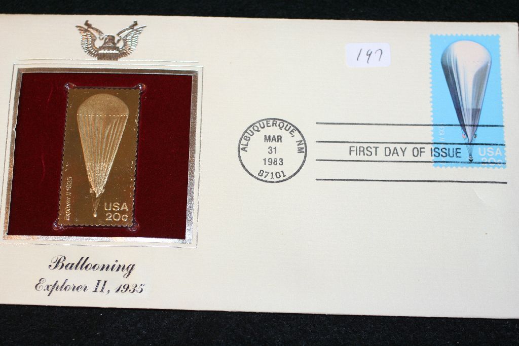 1983 First Day Issue 22K Gold Replica Stamp W/Postal Stamp; Ballooning Explorer II, 1935