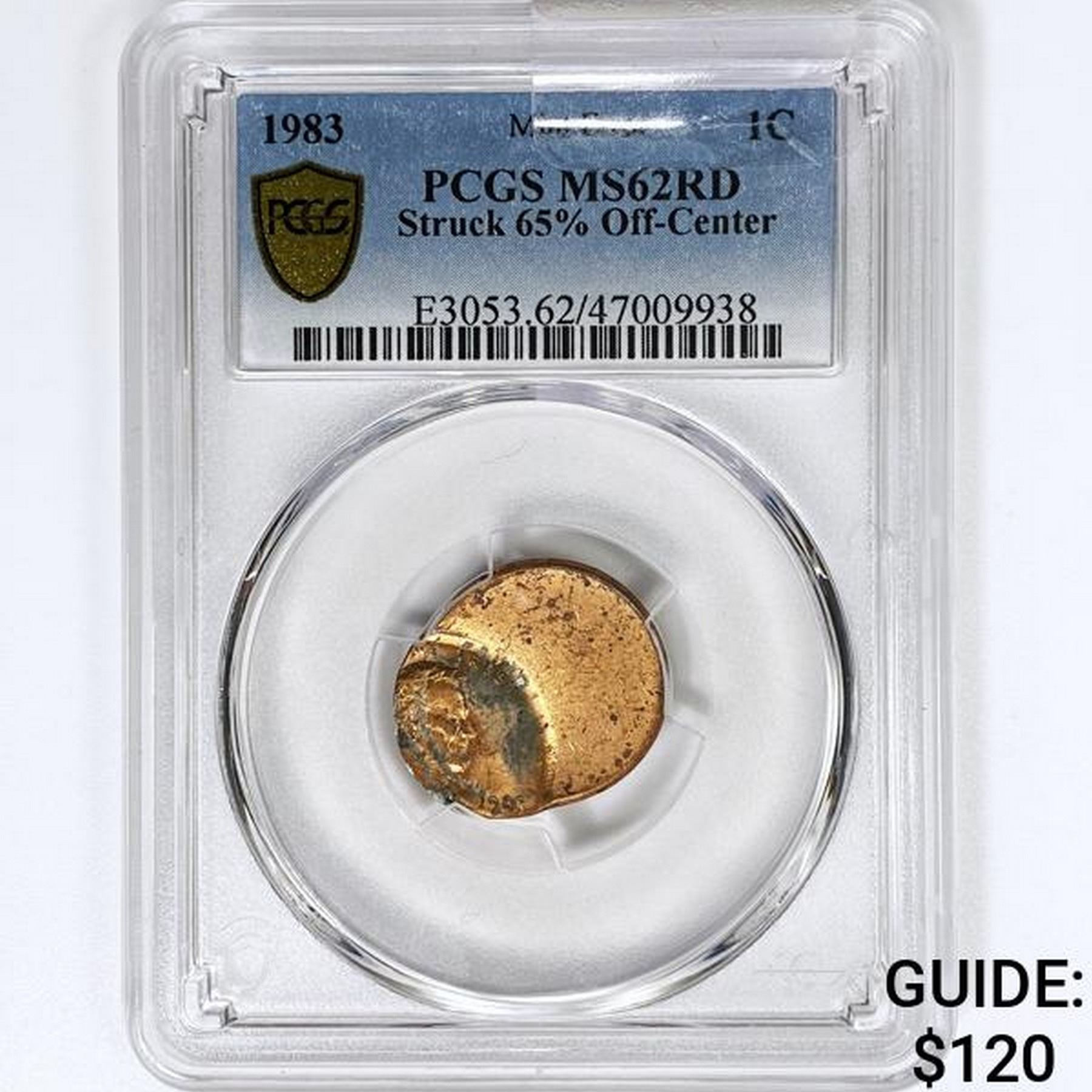 1983 L Mem. Cent PCGS MS62 RD 65% Off-Center