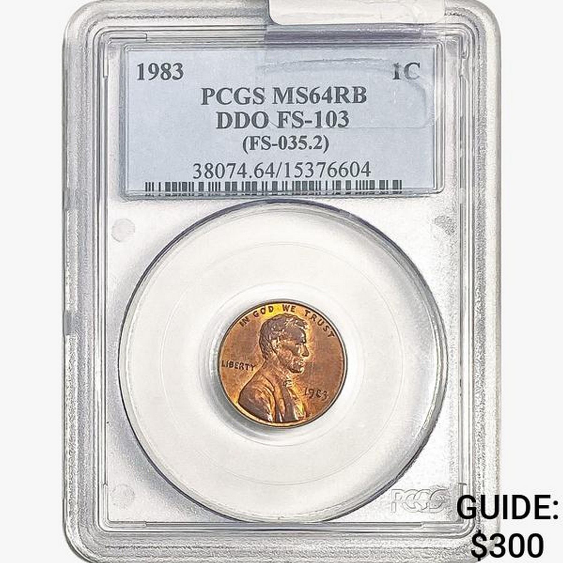 1983 Lincoln Memorial Cent PCGS MS64 RB DDO FS-103