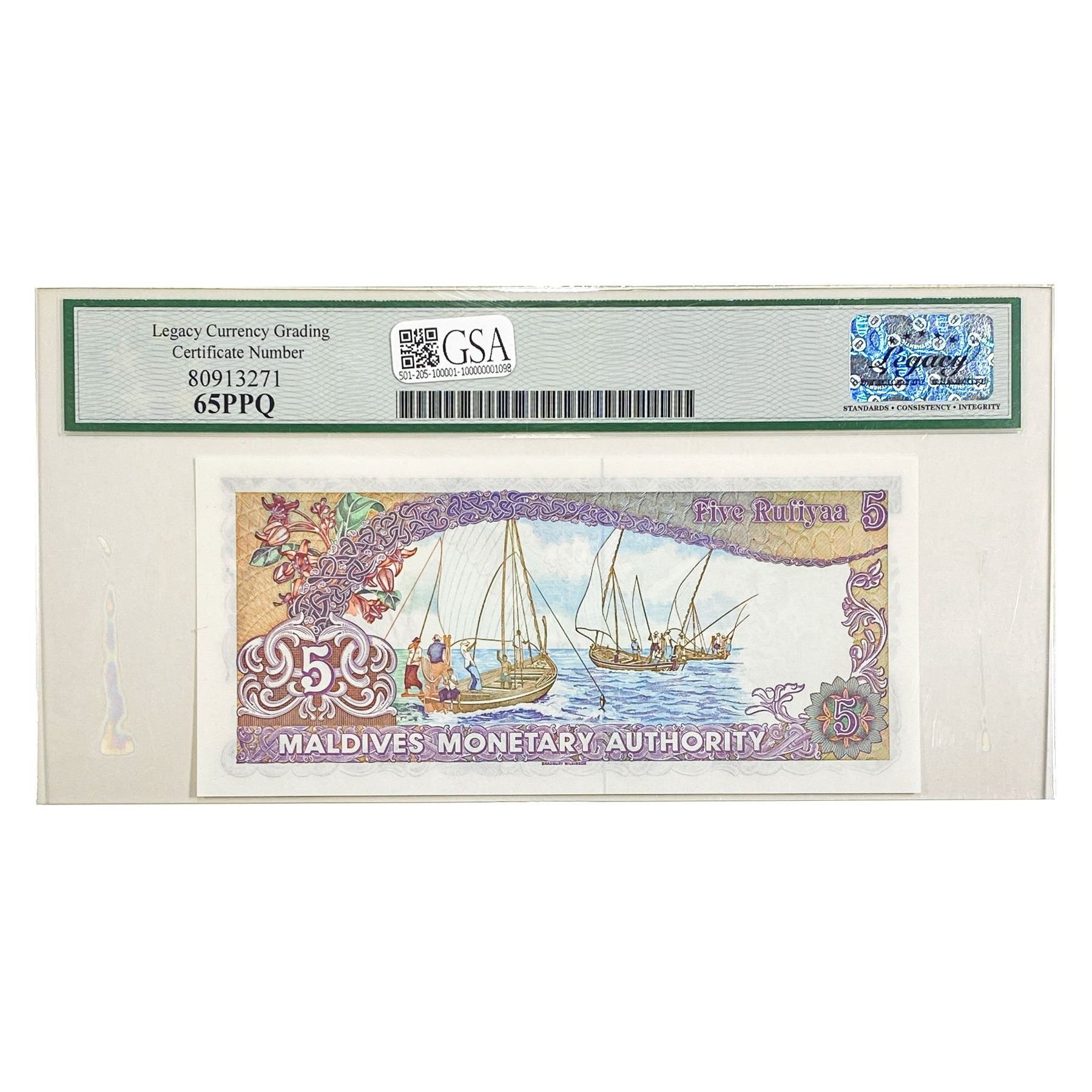 1983 Maldives 5 Rufiyaa Currency Legacy GEM UNC PPQ