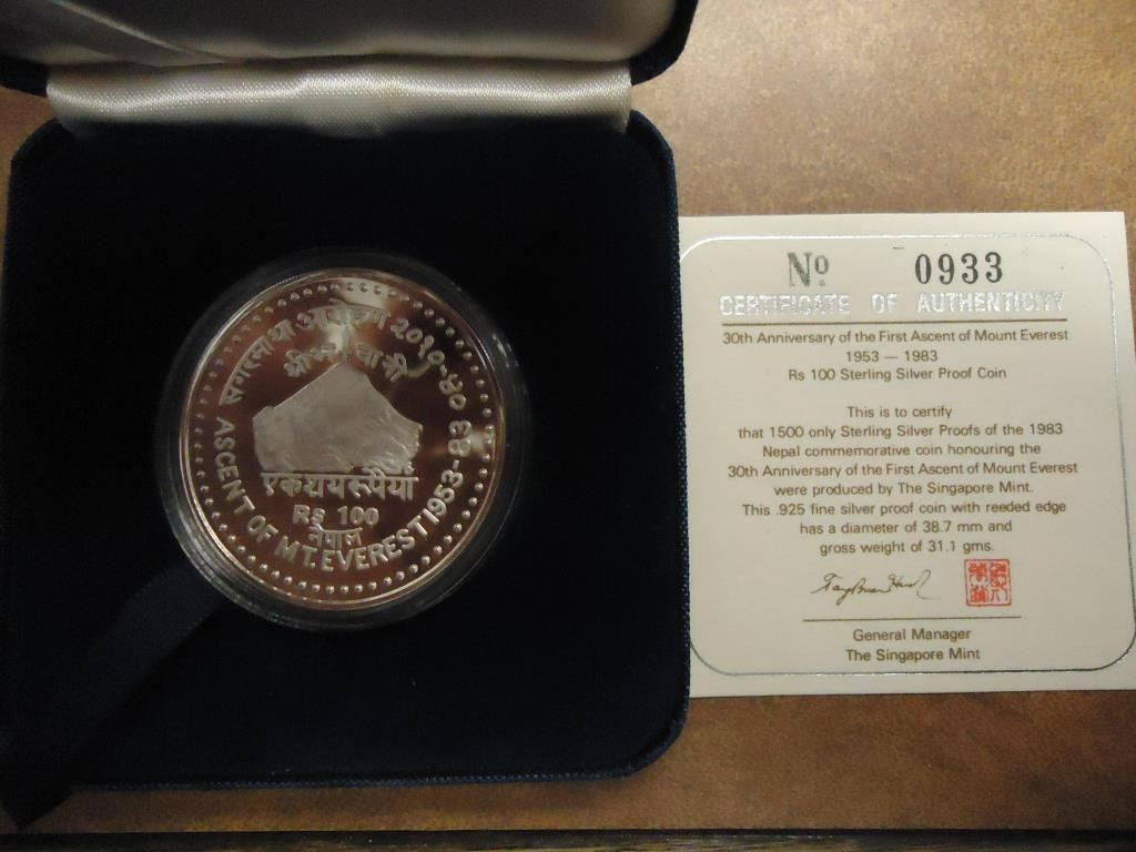 1983 NEPAL SILVER 100 RUPEES PROOF 30TH ANNIVERISARY ASCENT OF MT. EVEREST, MINTAGE OF ONLY 1500, O
