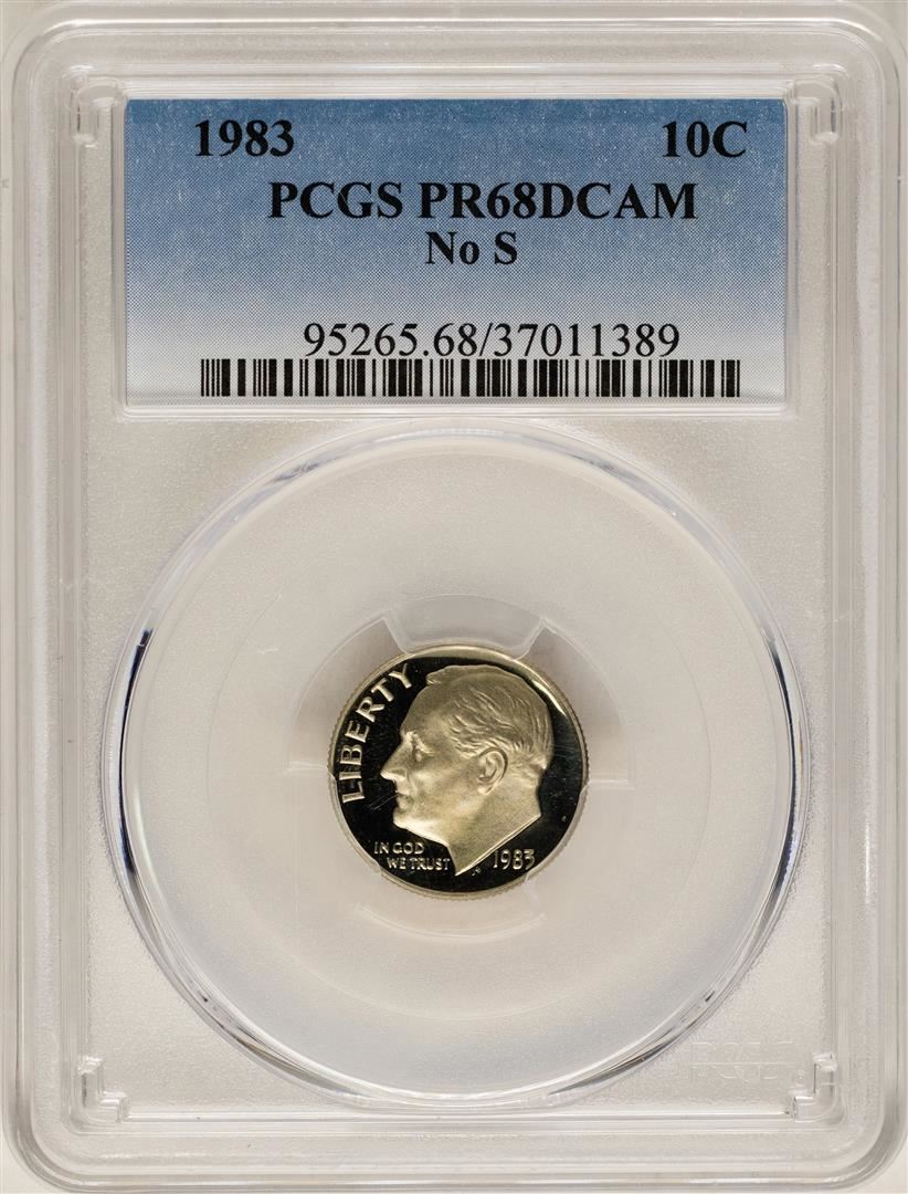 One 1983 'No S' Proof Roosevelt Dime Coin PCGS PR68DCAM. PCGS Graded.