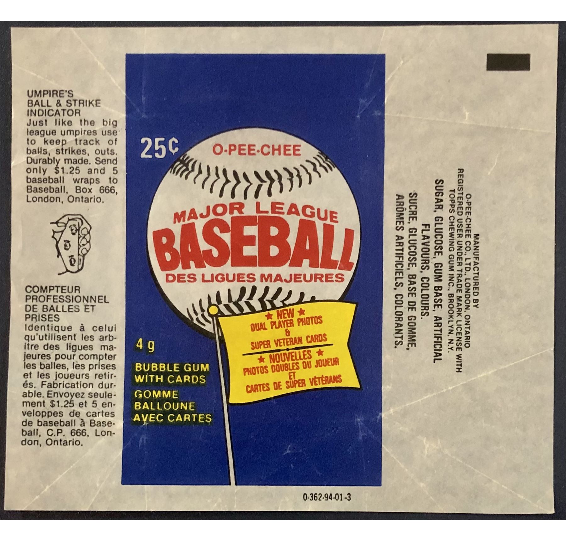 1983 O-PEE-CHEE BASEBALL WRAPPER