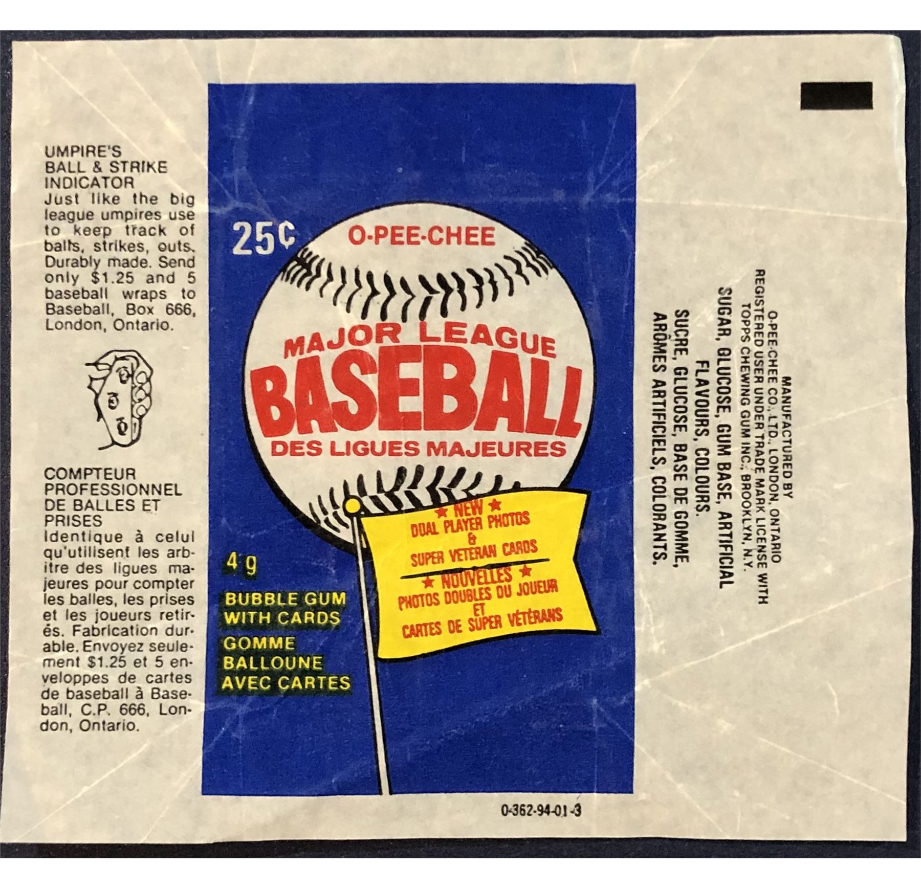1983 O-PEE-CHEE BASEBALL WRAPPER