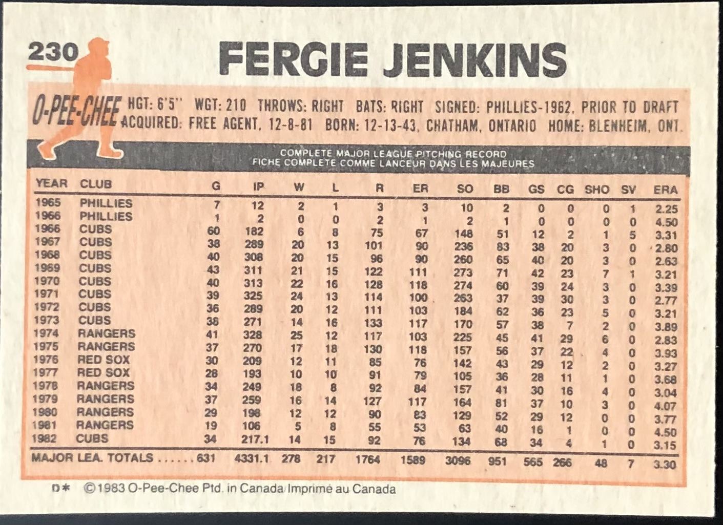 Card #230 MLB, baseball, vintage, OPC
