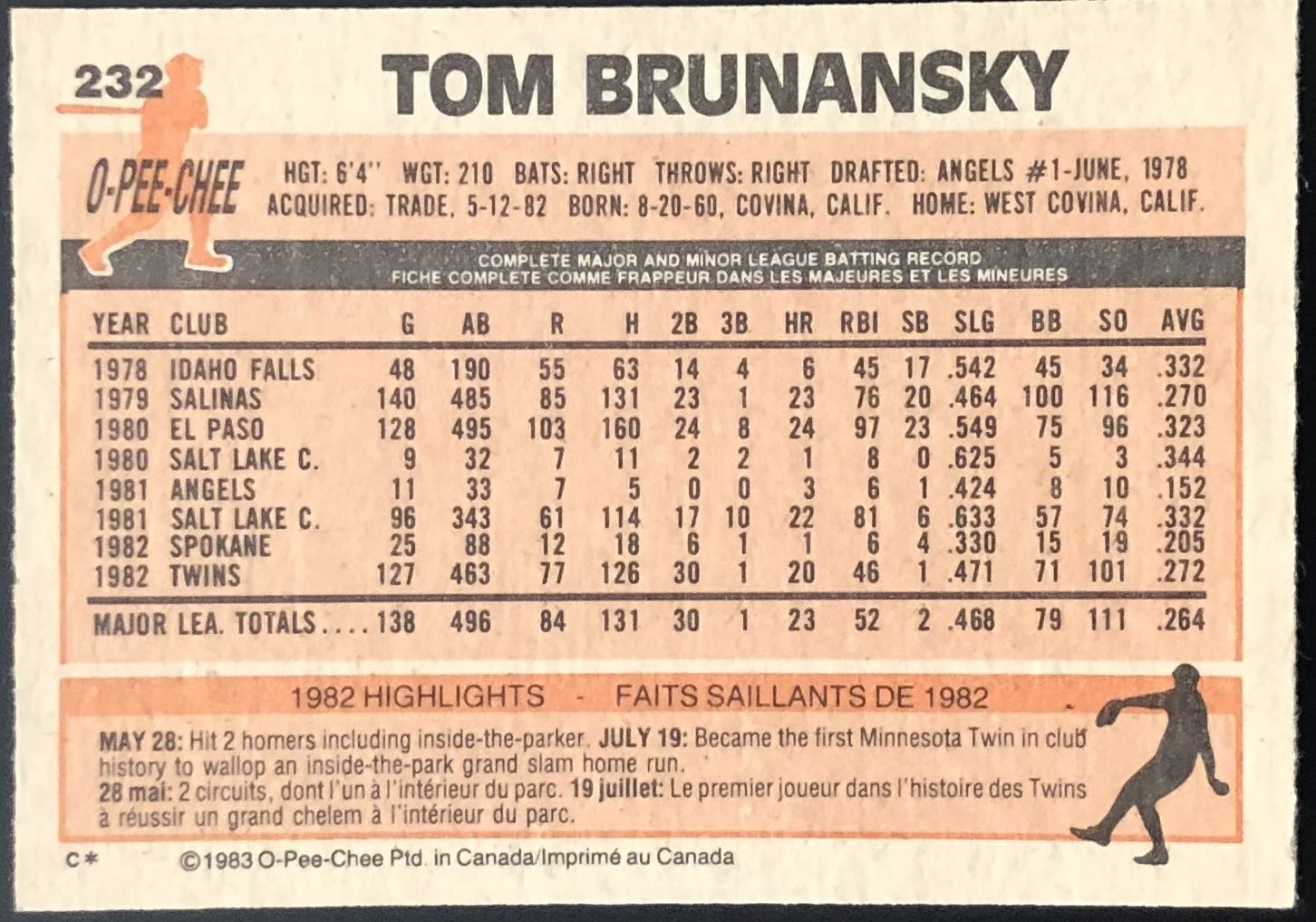 1983 O-PEE-CHEE TOM BRUNANSKY