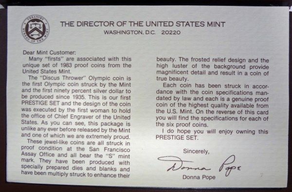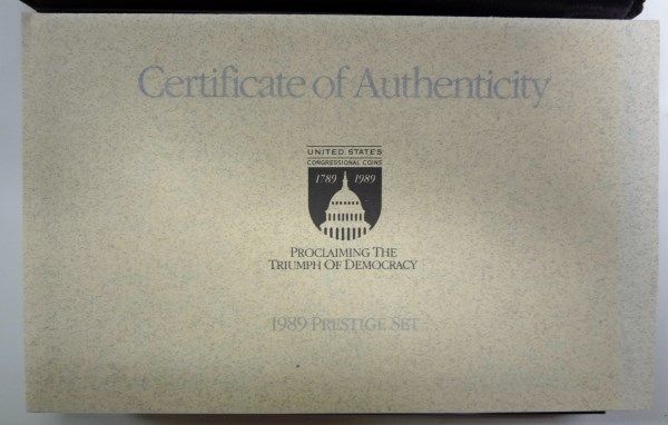 1983 OLYMPIC AND 1989 CONGRESSIONAL PRESTIGE SETS WITH CERTS, DAMAGE TO BOXES