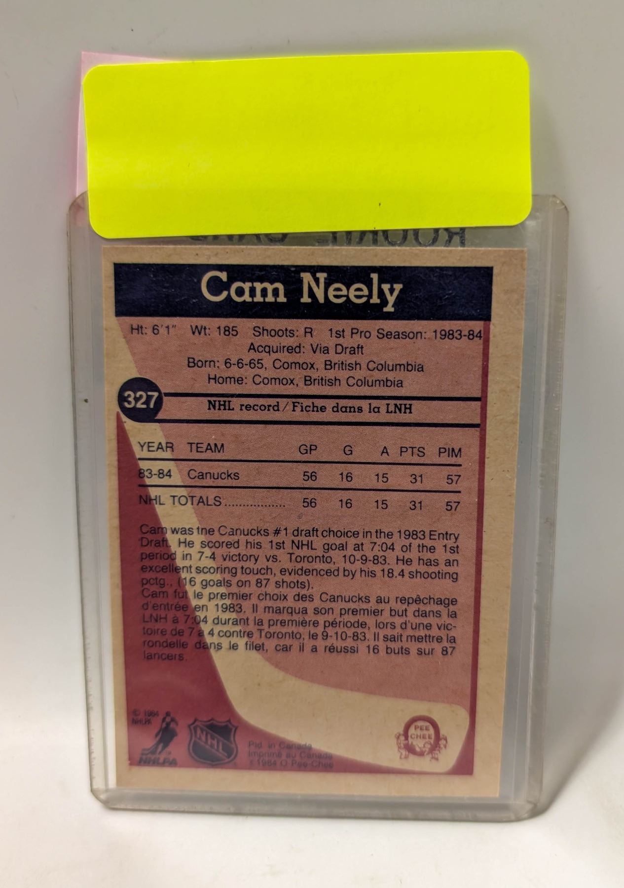 1983 OPC CAM NEELY ROOKIE CARD
