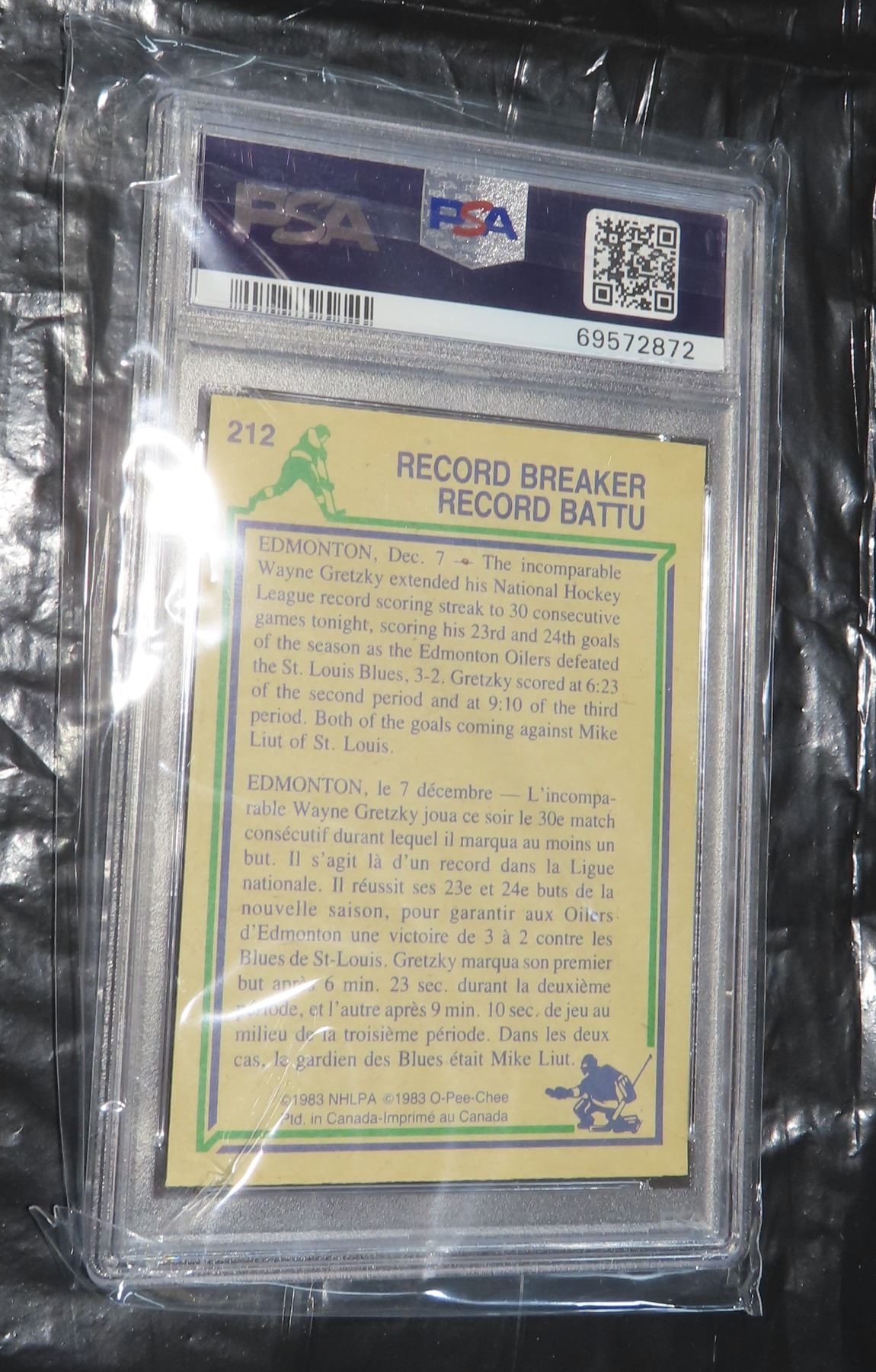 1983 OPC Gretzky R.B #212 PSA 8