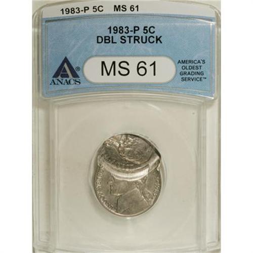 <B>1983-P 5C --Double Struck--MS61 ANACS.</B></I><BR><BR><b>Shipping:</b> Coins & Currency (<a target="_blank" href="http://www.heritageauctions.com/common/shipping.php">view shipping information</a>)
