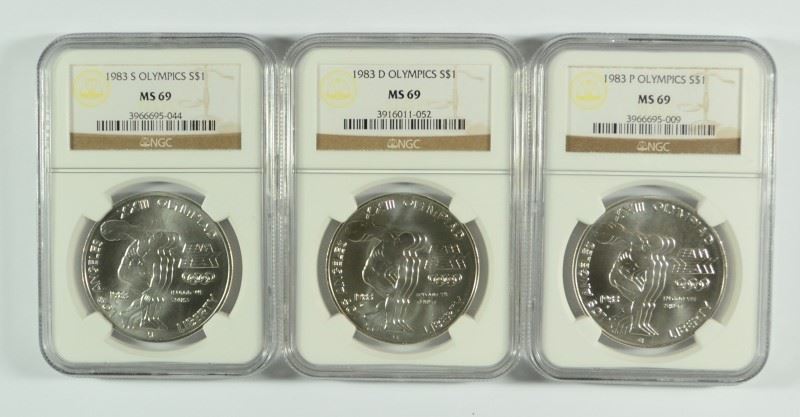 1983 P,D&S OLYMPIC COMMEMORATIVE SILVER DOLLARS, ALL NGC MS-69