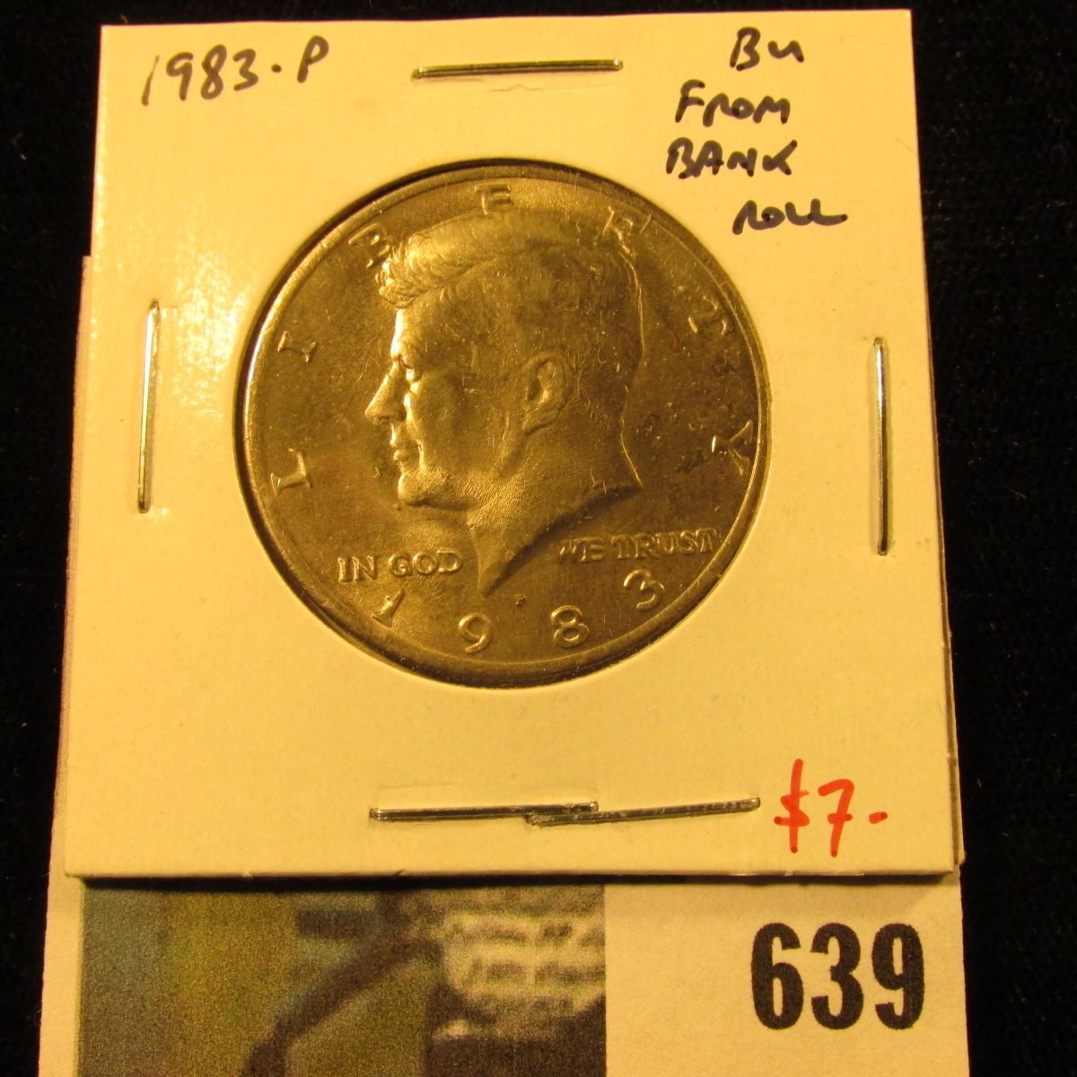 1983-P Kennedy Half Dollar, BU from bank roll, no Mint Sets issued in 1982 or 1983, scarce in BU, value $7