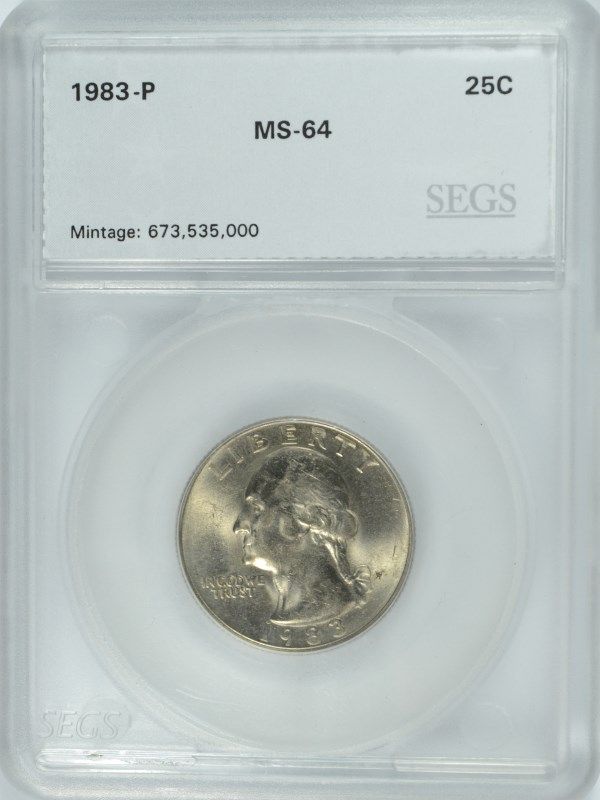 1983-P WASHINGTON QUARTER, SEGS MS-64 SCARCE!