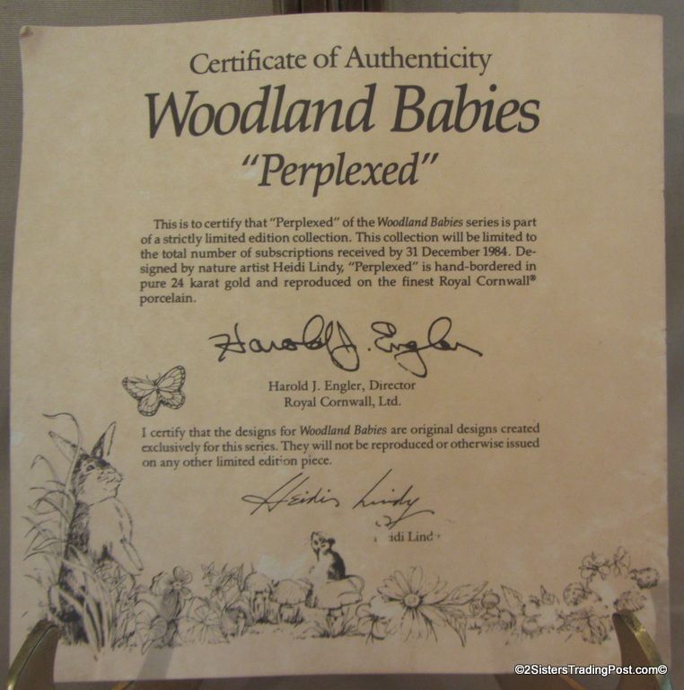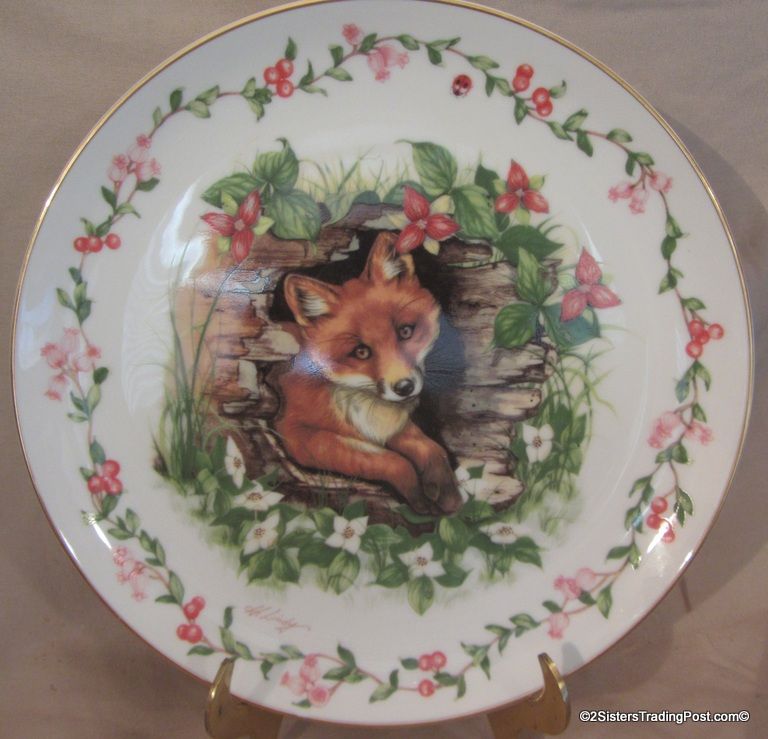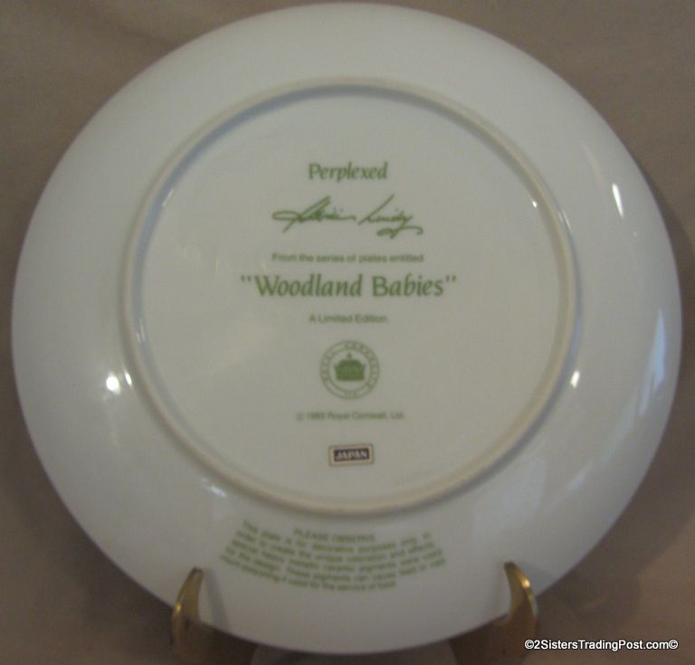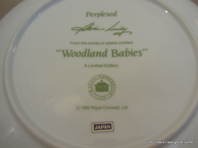 9 1/4" plate, dated 1983 What's The Buzz' is one of the plates in the series of plates entitled 'Woodland Babies'. These plates are hand-bordered in 24K gold and are limited edition plates by Royal Cornwall, Ltd and designed by nature artist Heidi Lindy. The plate is in the original box with COA. (Please see images for details)