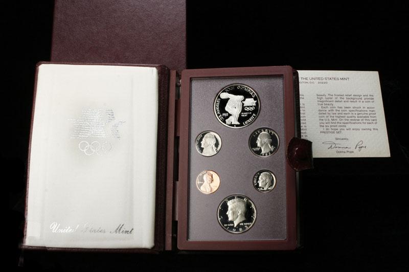 A piece of History. This set contains the first 90% silver dollar produced in the Since the 1935 Peace Dollar. This is also the first set in the Prestige Proof Series. This set includes the 90% silver "Discus Thrower" Olympic coin. Very difficult set to Locate. Estimated Value $100