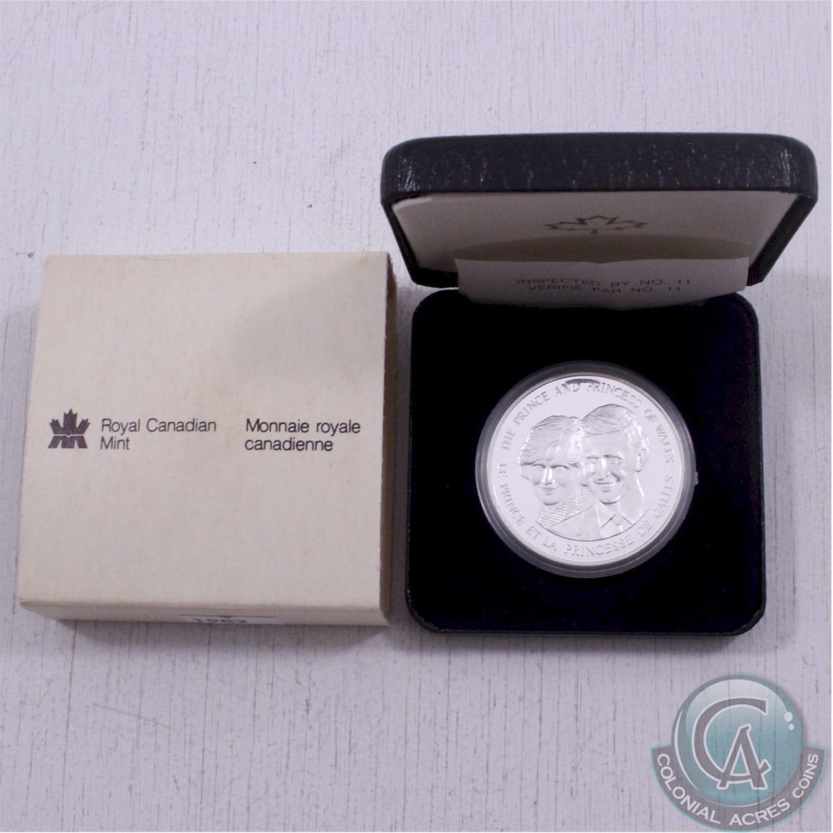 1983 Prince Charles and Princess Diana of Wales Silver Medallion with display box issued by the Royal Canadian Mint.