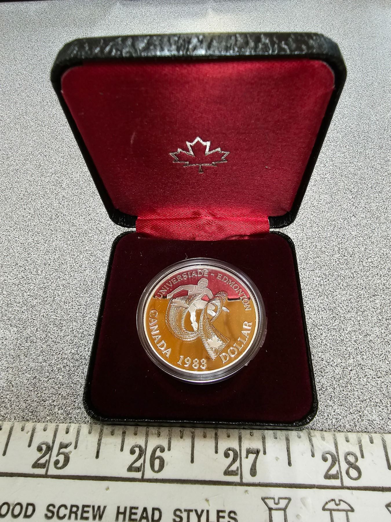 1983 Proof World University Games Silver Dollar. Ultra Heavy Cameo. Housed in its original case of issue.