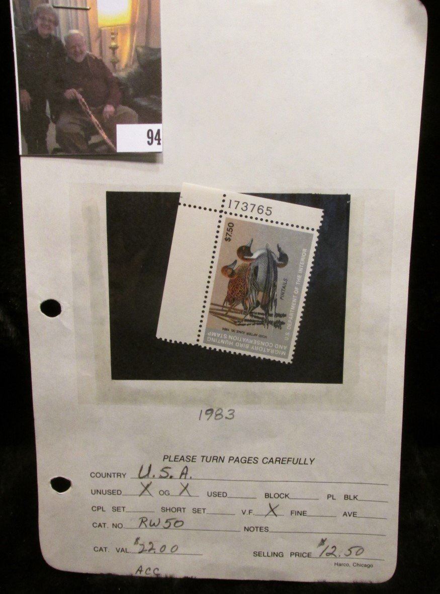 1983 RW50 Plate number corner Federal Migratory Bird Hunting and Conservation $7.50 Stamp, not signe