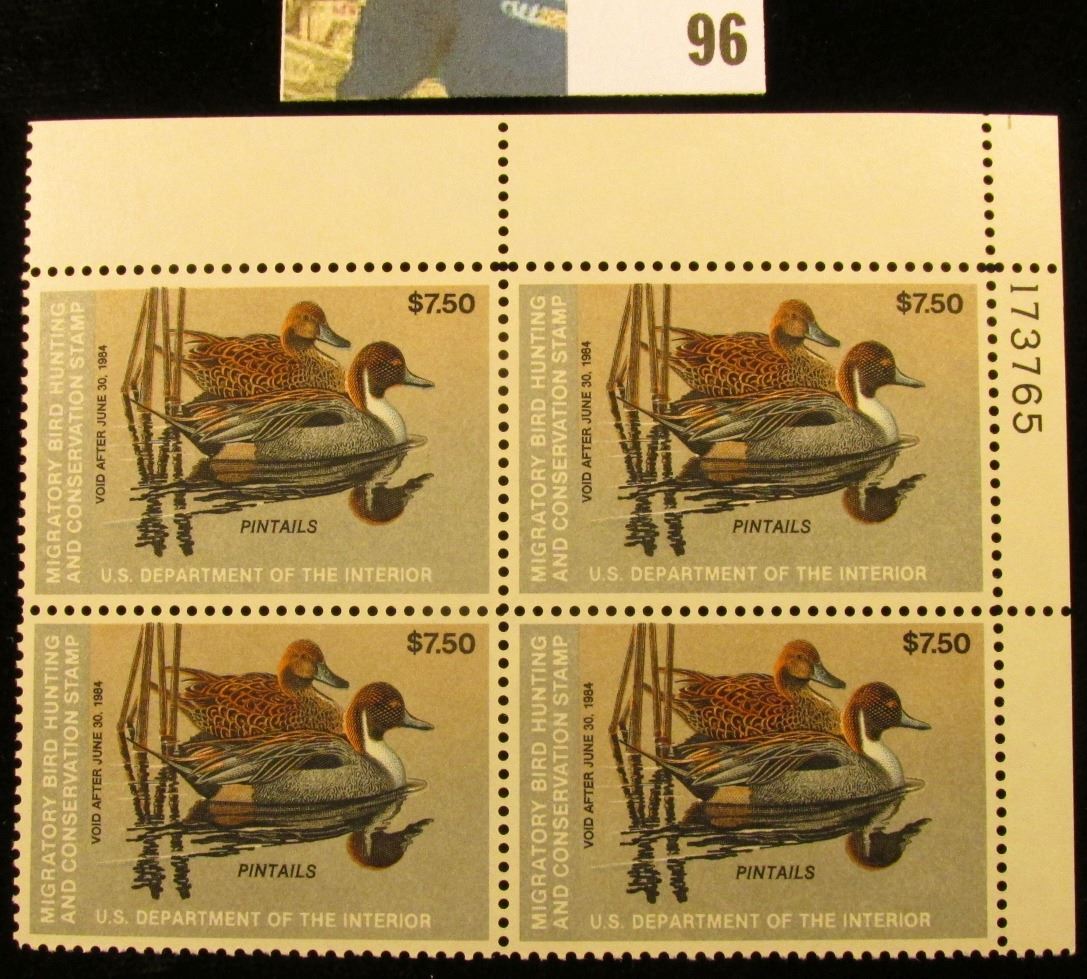 1983 RW50 Plateblock of 4 U.S. Federal Migratory Waterfowl Stamps, VF. Originally part of a Sam Houston Philatelics Auction. Serial # 173765.