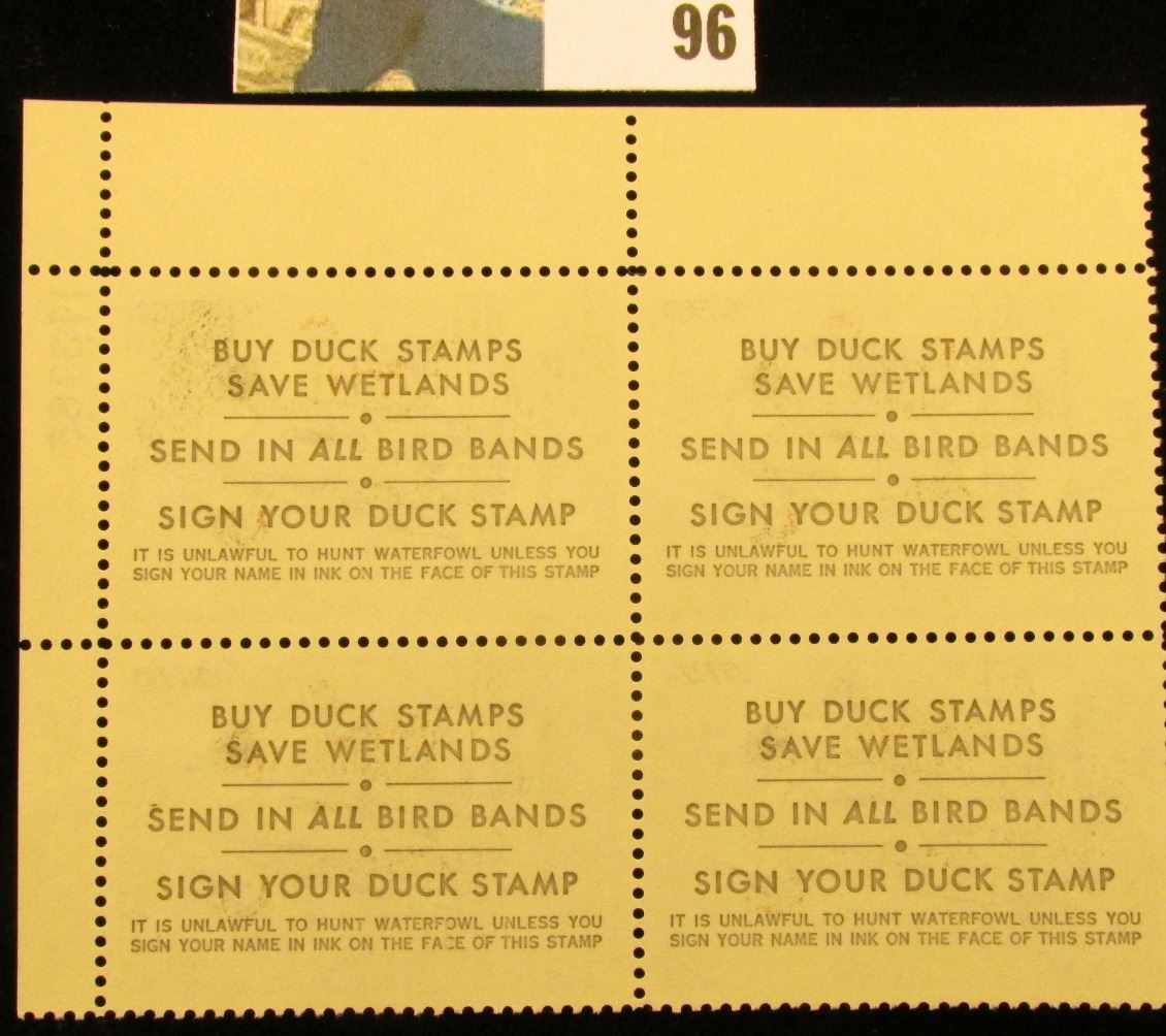 1983 RW50 Plateblock of 4 U.S. Federal Migratory Waterfowl Stamps, VF. Originally part of a Sam Hous