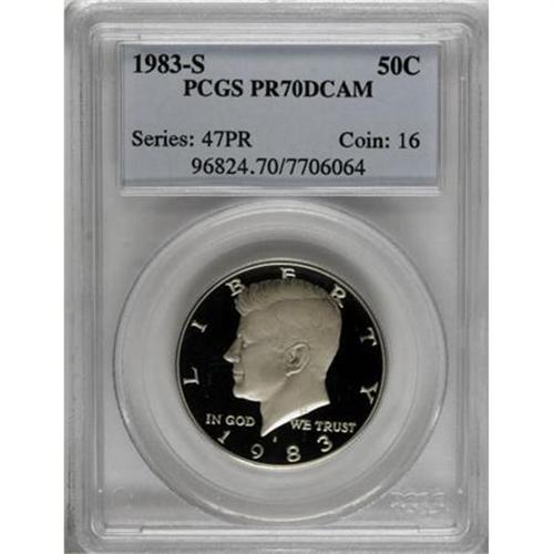<B>1983-S 50C PR70 Deep Cameo PCGS.</B></I> PCGS Population (138/0). NGC Census: (8/0). Numismedia Wsl. Price for NGC/PCGS coin in PR70: $380. (#96824)<BR><BR><b>Shipping:</b> Coins & Currency (<a target="_blank" href="http://www.heritageauctions.com/common/shipping.php">view shipping information</a>)