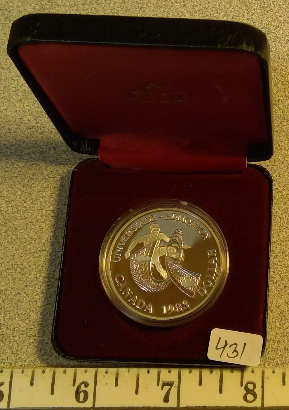 1983 Silver Dollar. Proof with Ultra Heavy Cameo. Commemorates the World University Games in Edmonton. Housed in its original case of issue. Bright White.