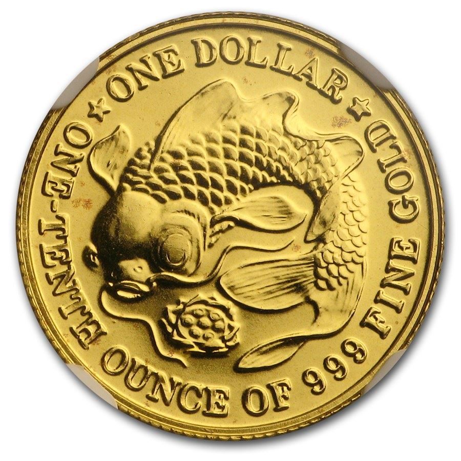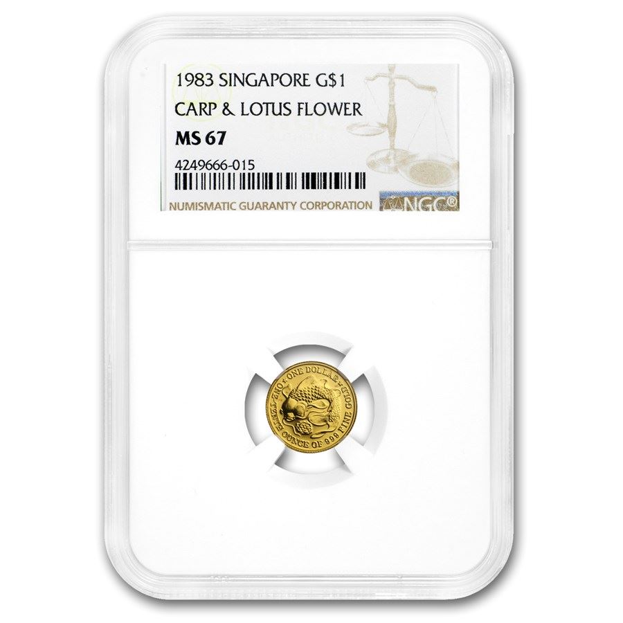 1983 Singapore 1/10 oz Gold $1 Carp & Lotus MS-67 NGC
