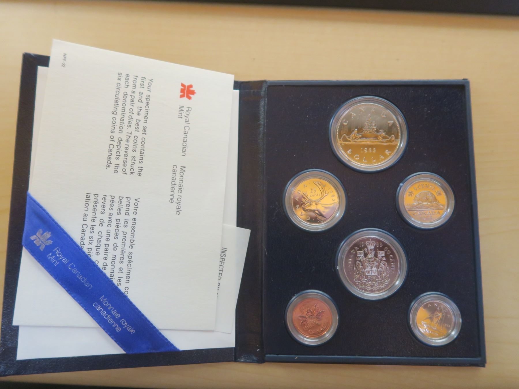 1983 Specimen Set. 6-coin set housed in its original Royal Canadian Mint case of issue.