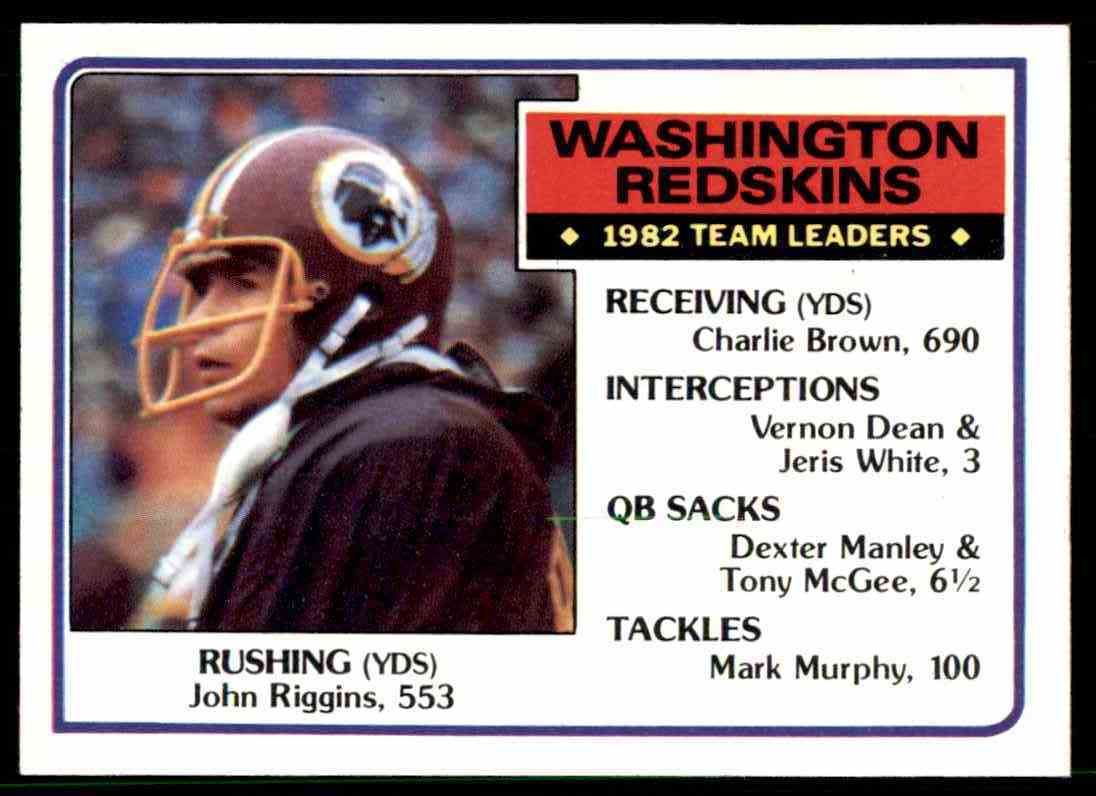 1983 Topps John Riggins #186 Football Card, Washington Redskins Team Leaders