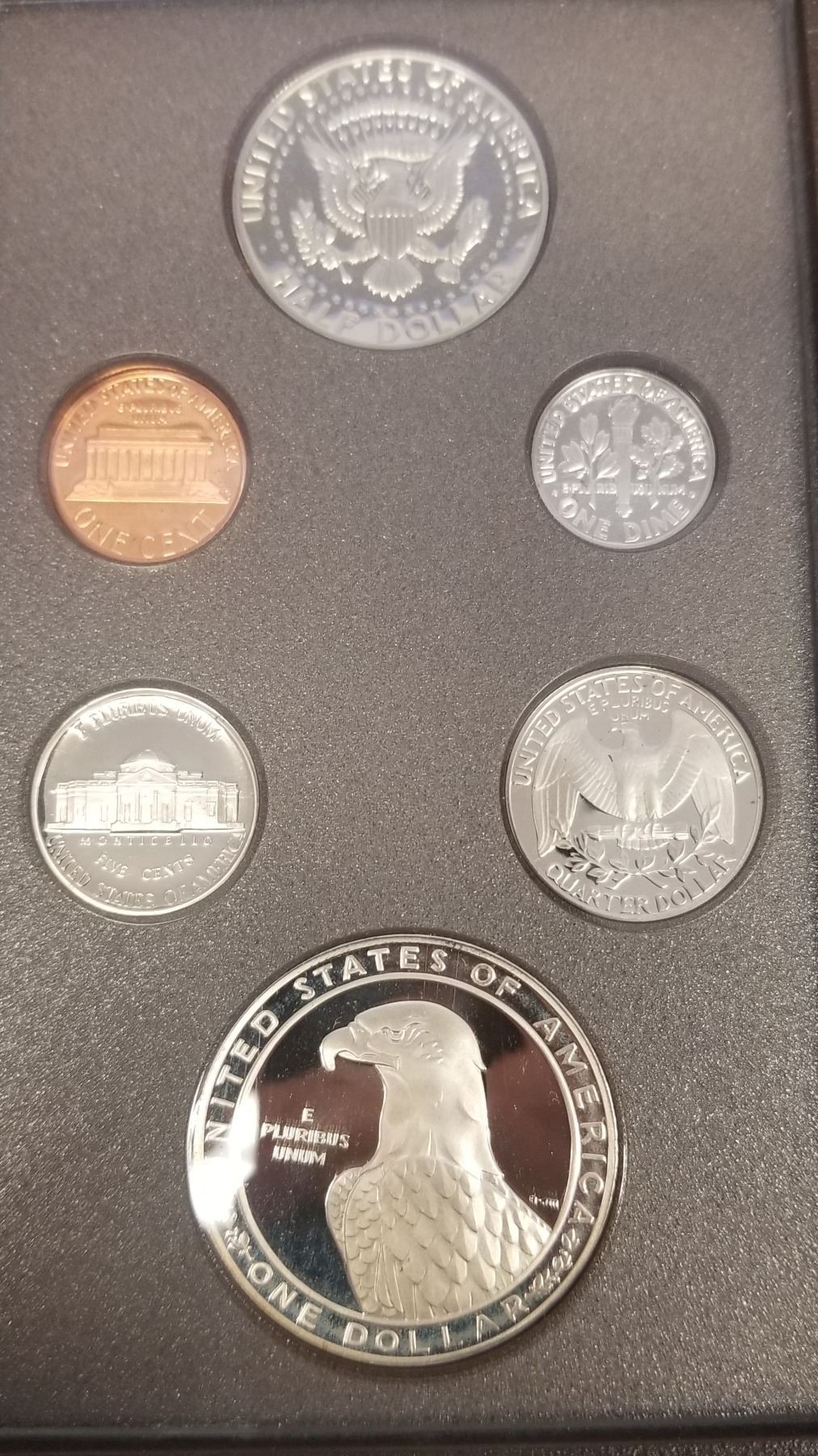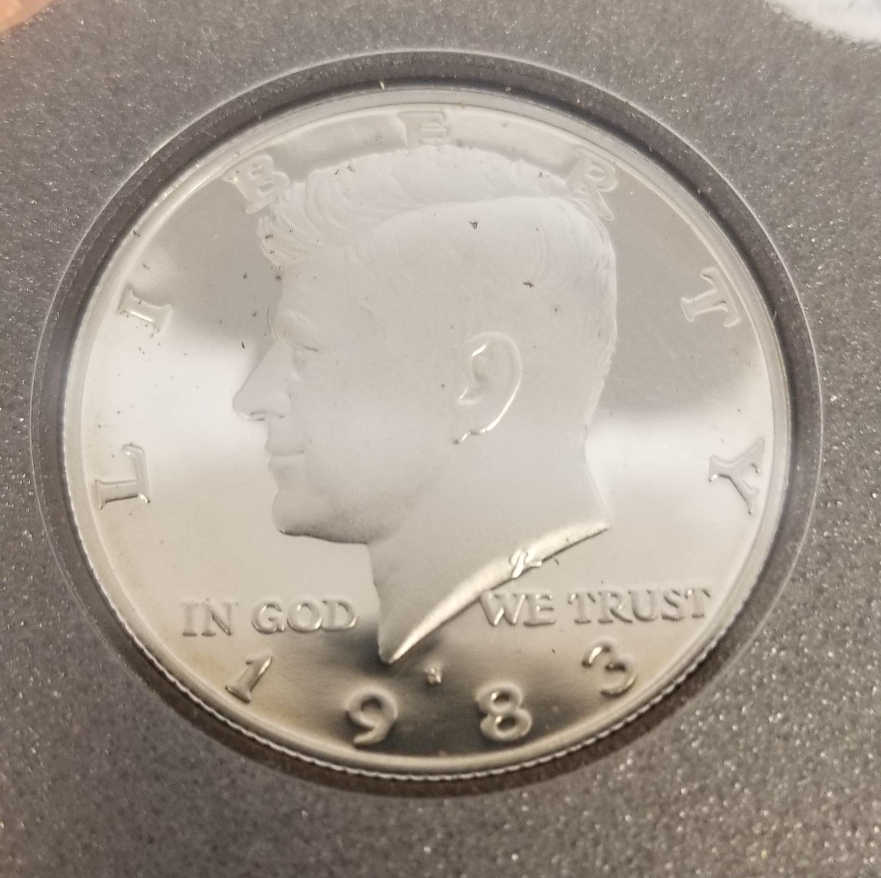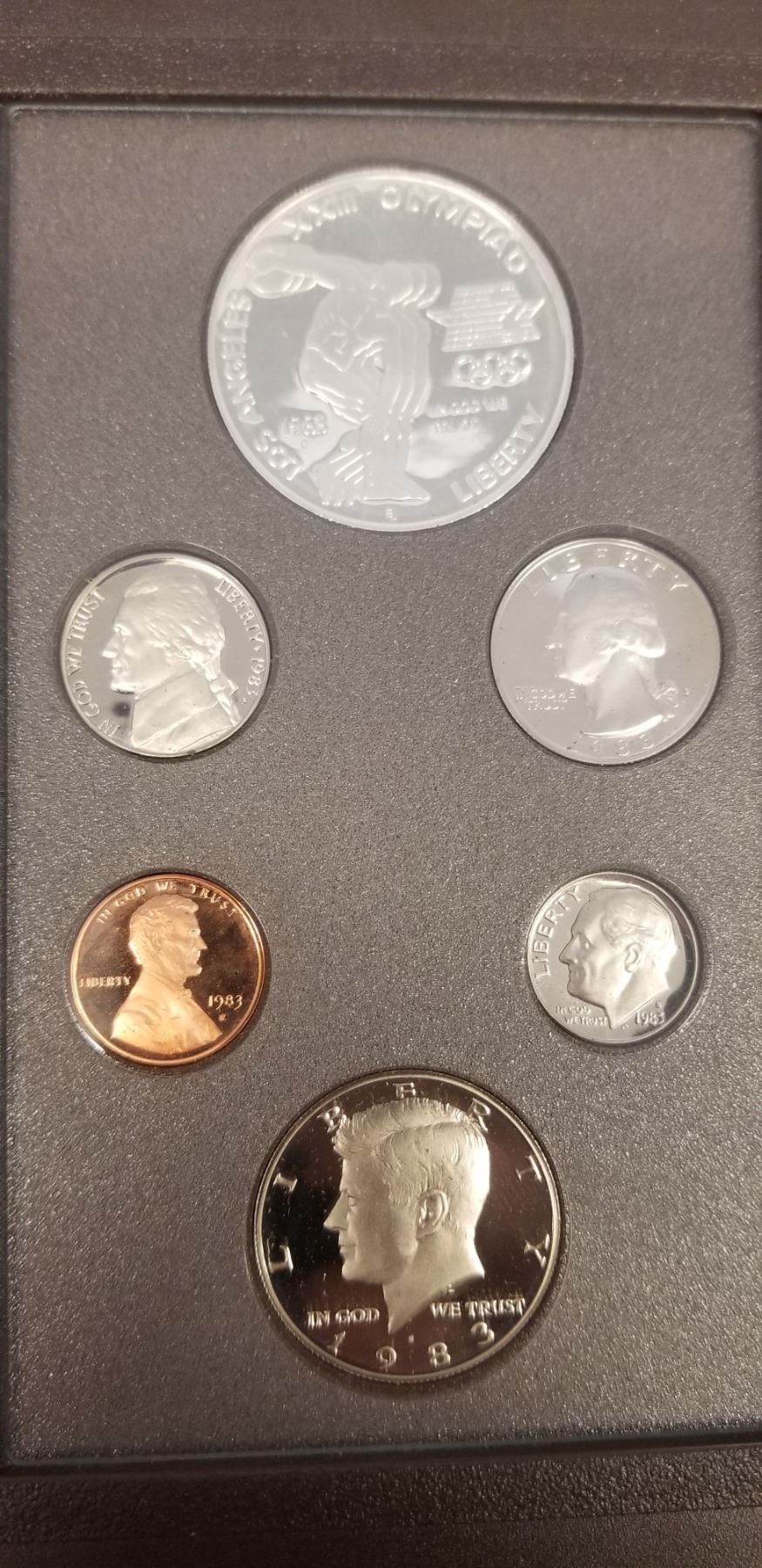 1983 US Mint Prestige Set struck in 90% Silver, with .7734 oz in weight. Comes with half dollar quarter, nickel, dime, and penny. All Stamped 1983 s