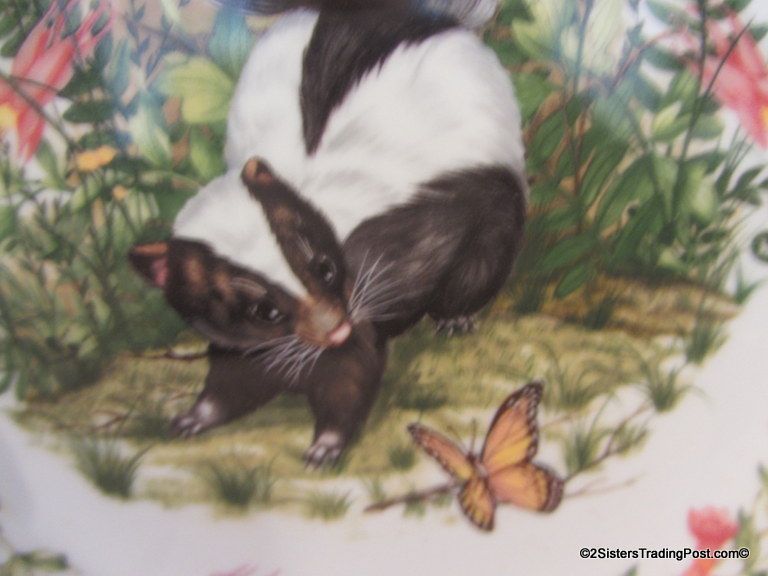 9 1/4" plate, dated 1983 'Unexpected Visitor' is one of the plates in the series of plates entitled 'Woodland Babies'. These plates are hand-bordered in 24K gold and are limited edition plates by Royal Cornwall, Ltd and designed by nature artist Heidi Lindy. The plate is in the original box with COA. (Please see images for details)