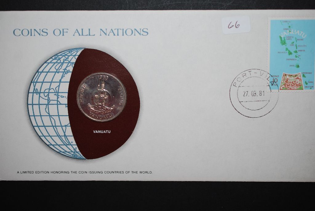 1983 Vanuatu 20 Vatu Foreign Coin With COA Included; Coins Of All Nations With Postal Stamp Postmarked 1981; EST. $5-10