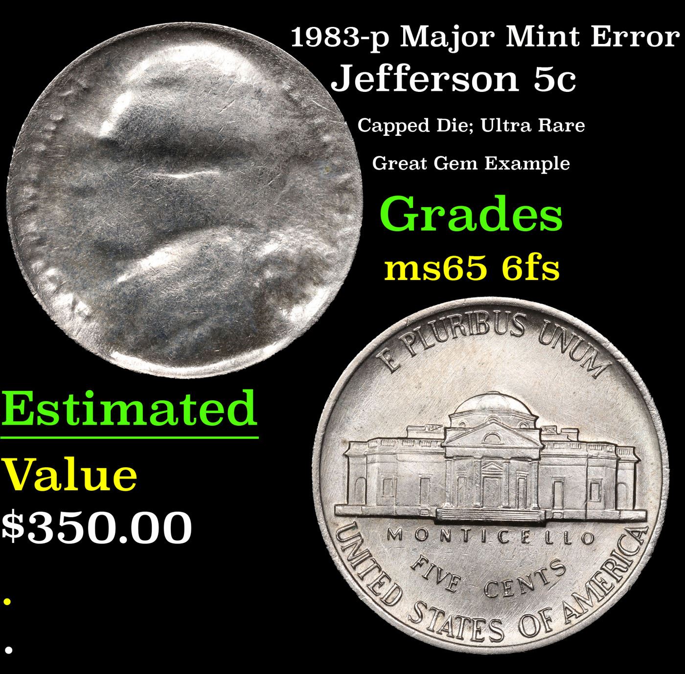 1983-p Major Mint Error Jefferson Nickel 5c Grades GEM 6fs.