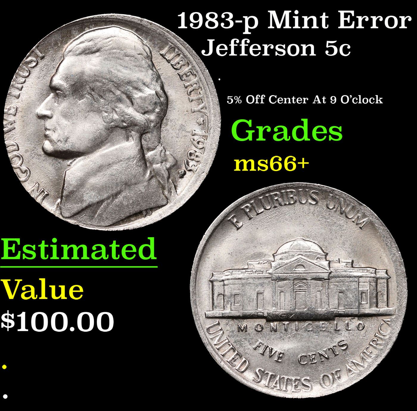1983-p Mint Error Jefferson Nickel 5c Grades GEM++ Unc.