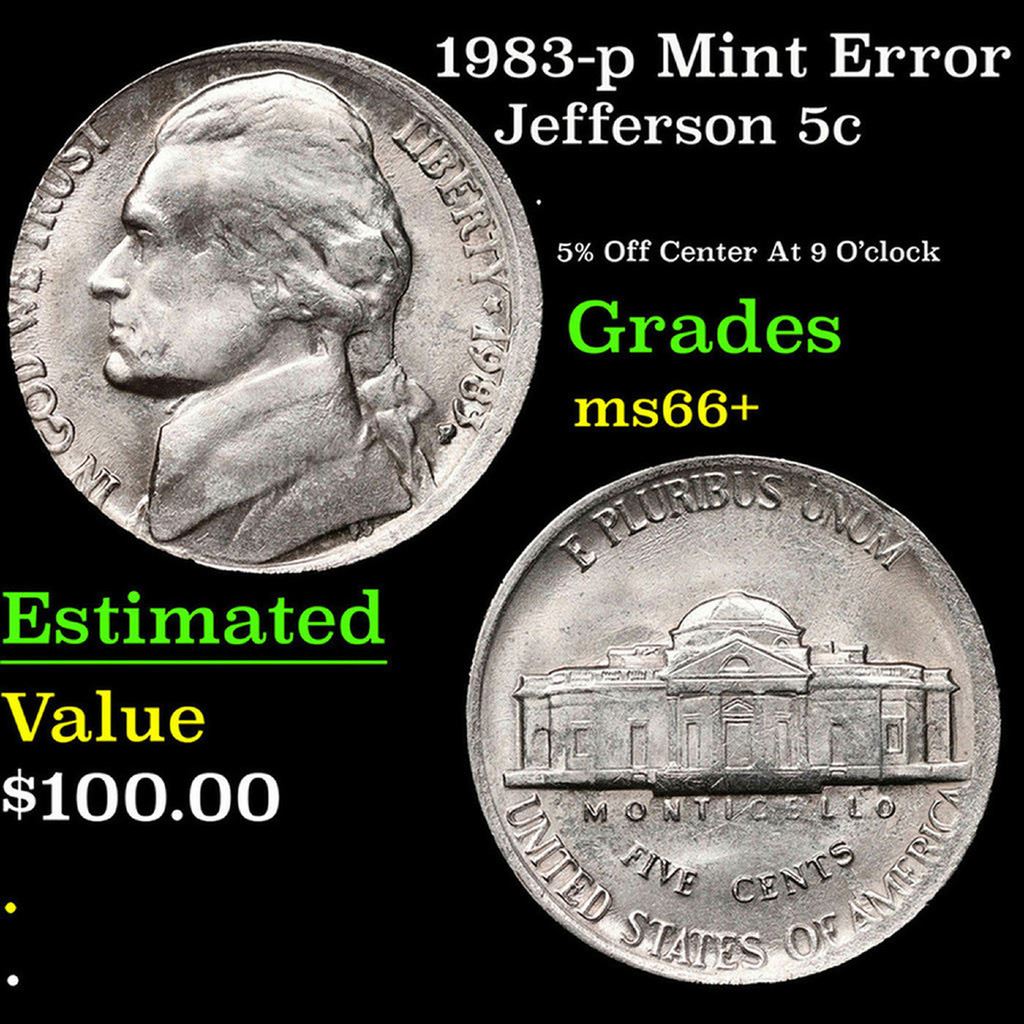 1983-p Mint Error Jefferson Nickel 5c Grades GEM++ Unc.