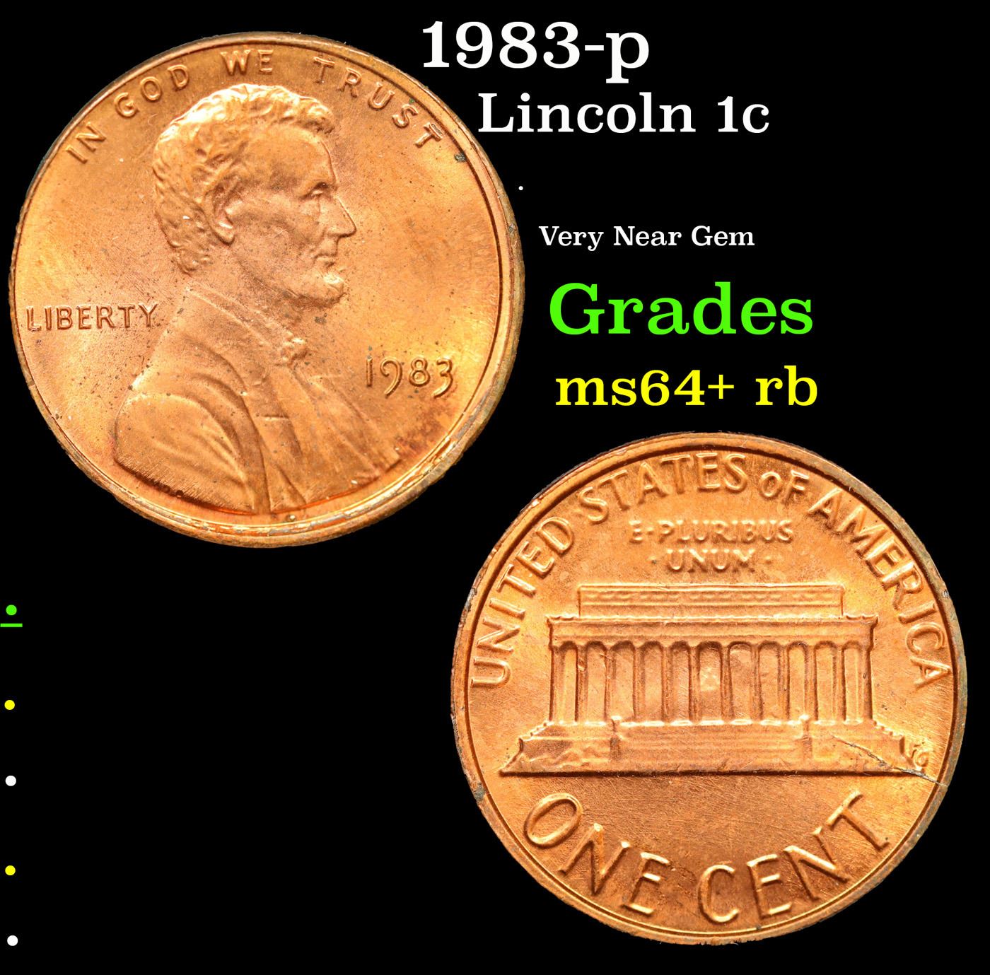 1983-p Lincoln Cent 1c Grades Choice+ Unc RB.