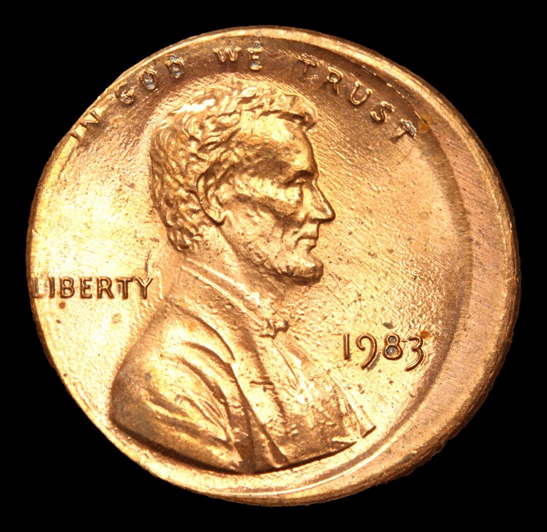1983-p Mint Error Sturck 10% off Center Lincoln Cent 1c Grades GEM Unc RD.