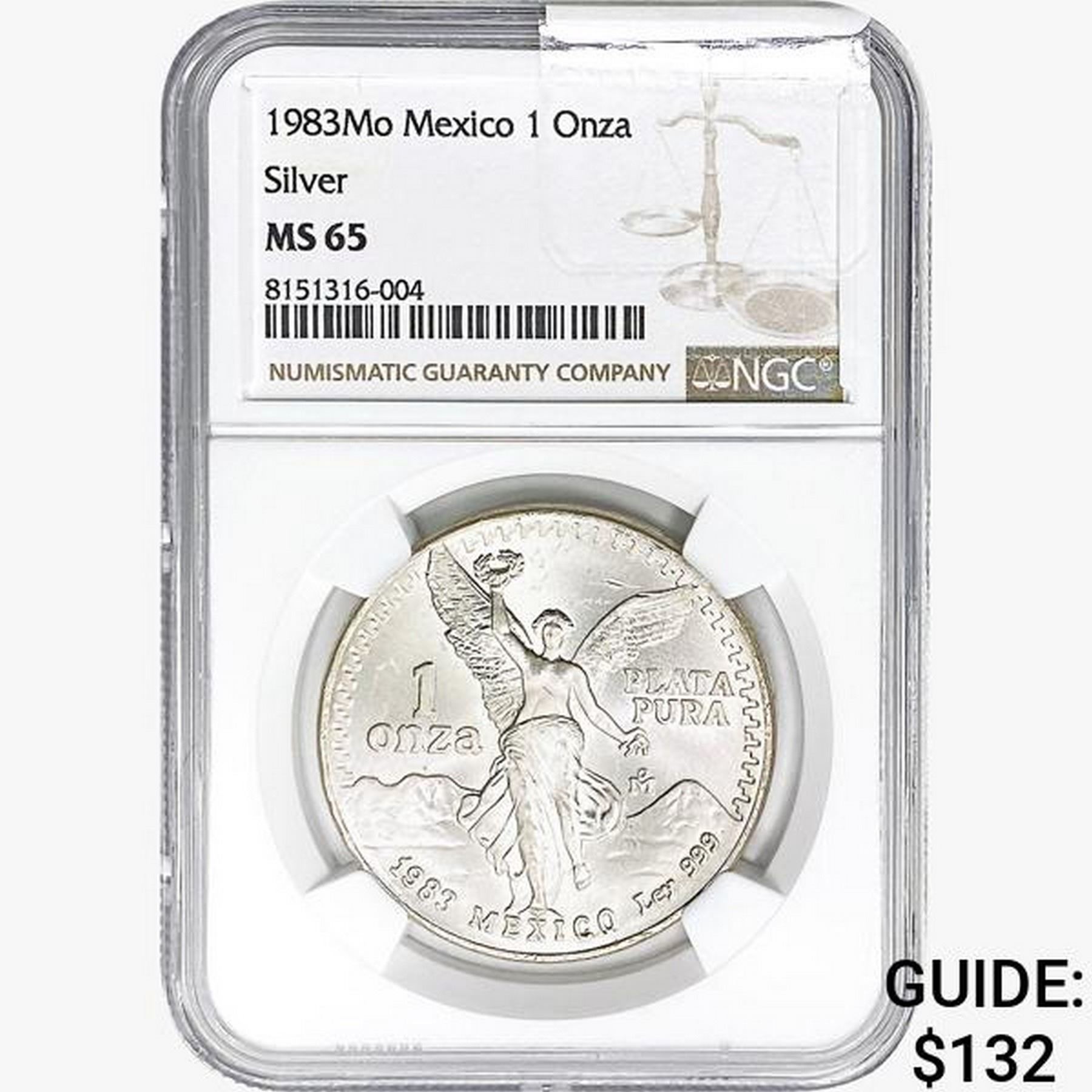 1983Mo 1oz. Silver Mexicanos Onza NGC MS65