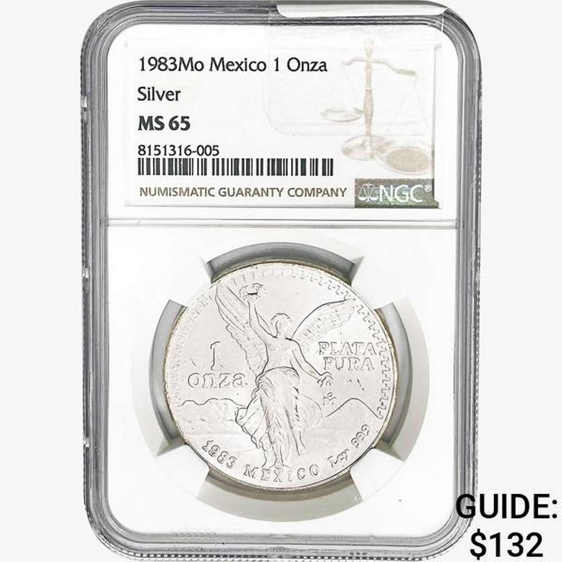 1983Mo 1oz. Silver Mexicanos Onza NGC MS65