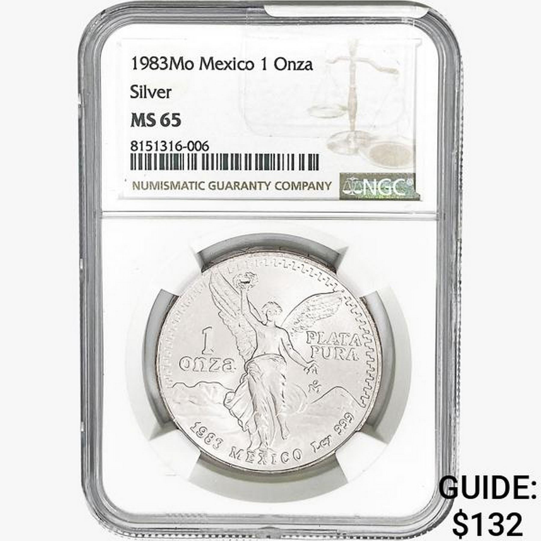 1983Mo 1oz. Silver Mexicanos Onza NGC MS65