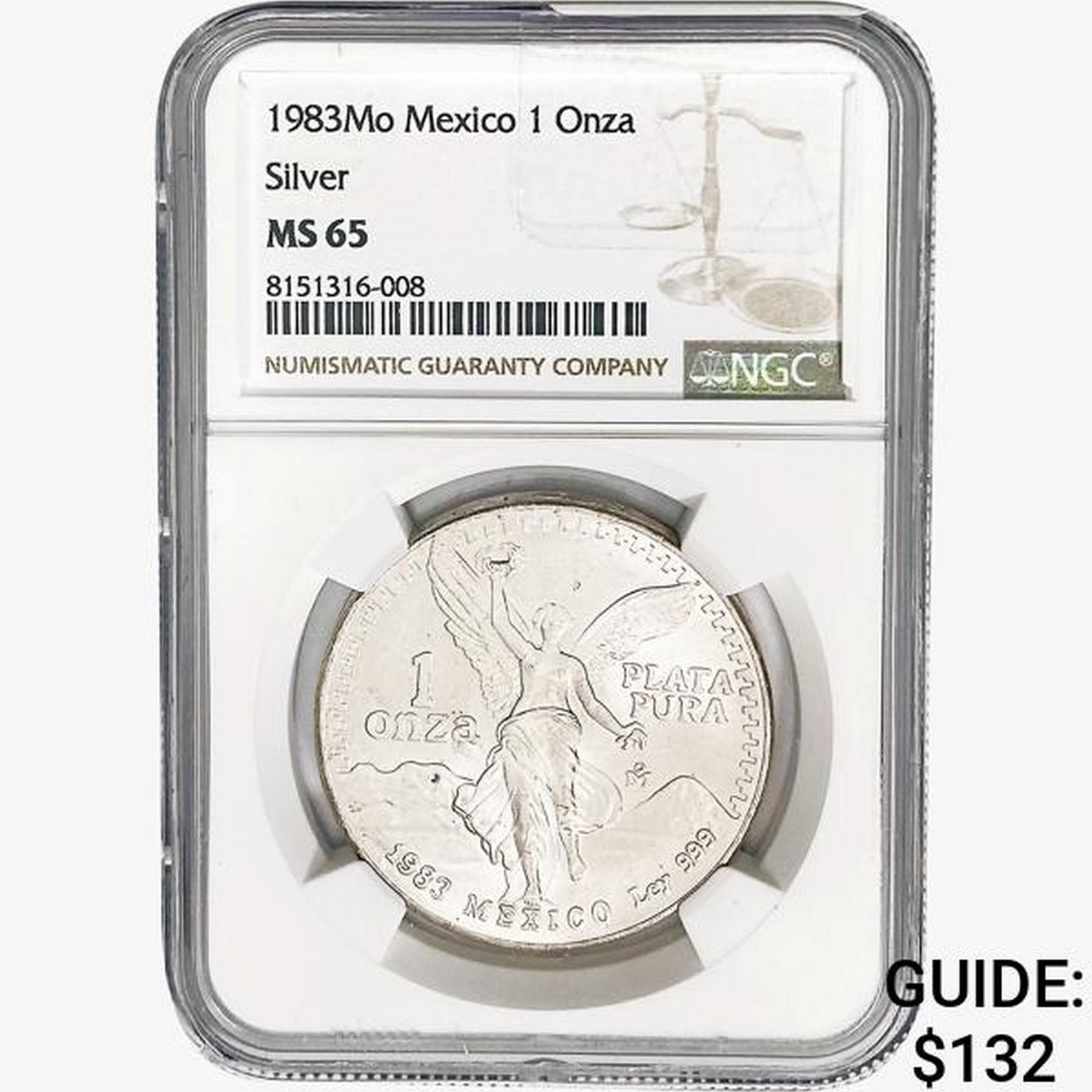 1983Mo 1oz. Silver Mexicanos Onza NGC MS65
